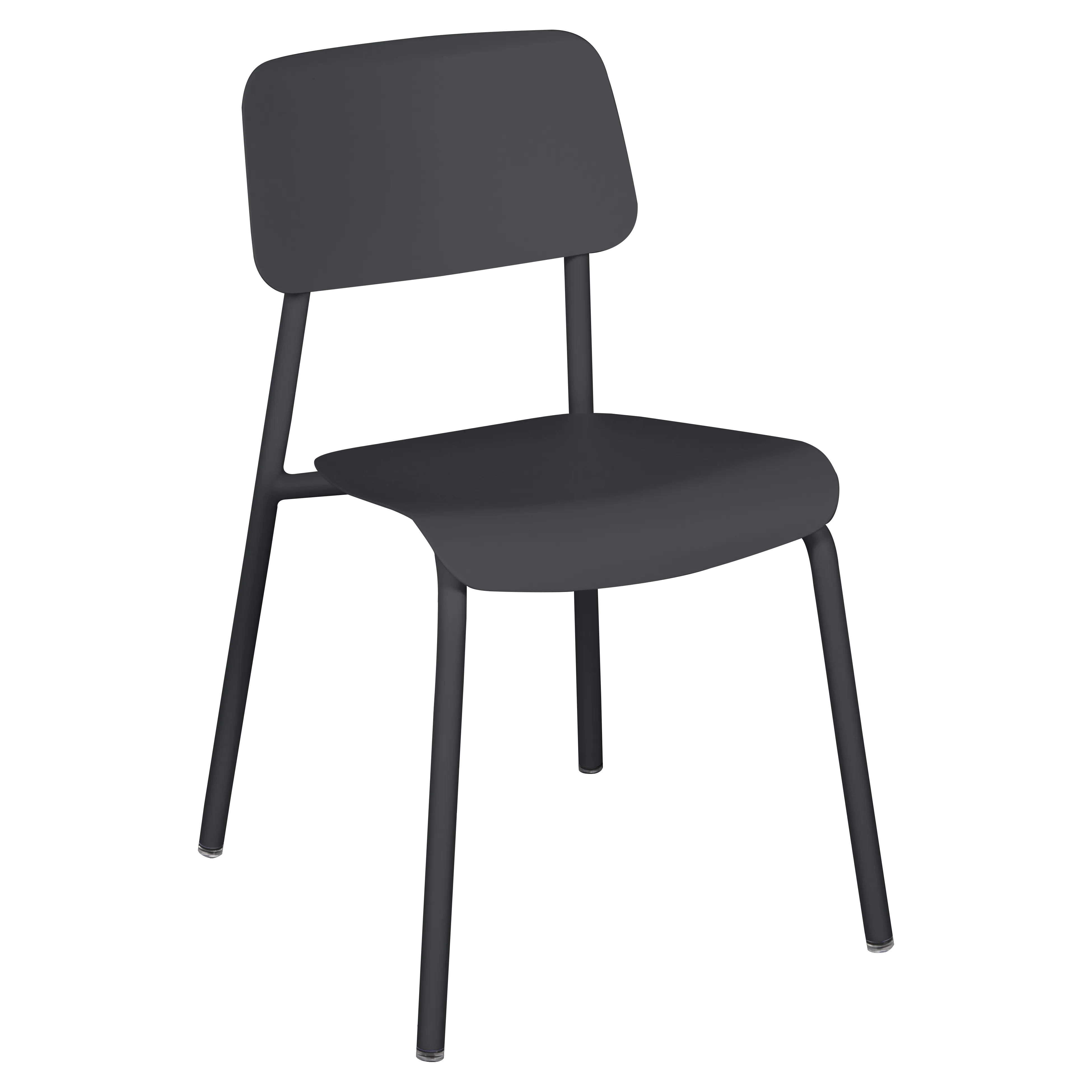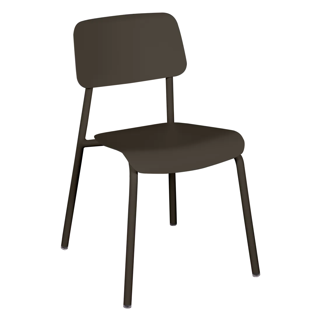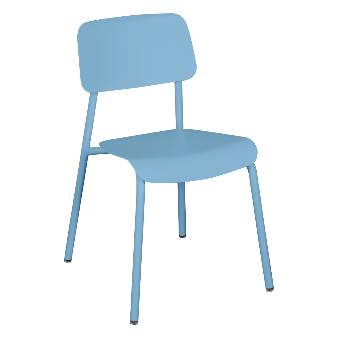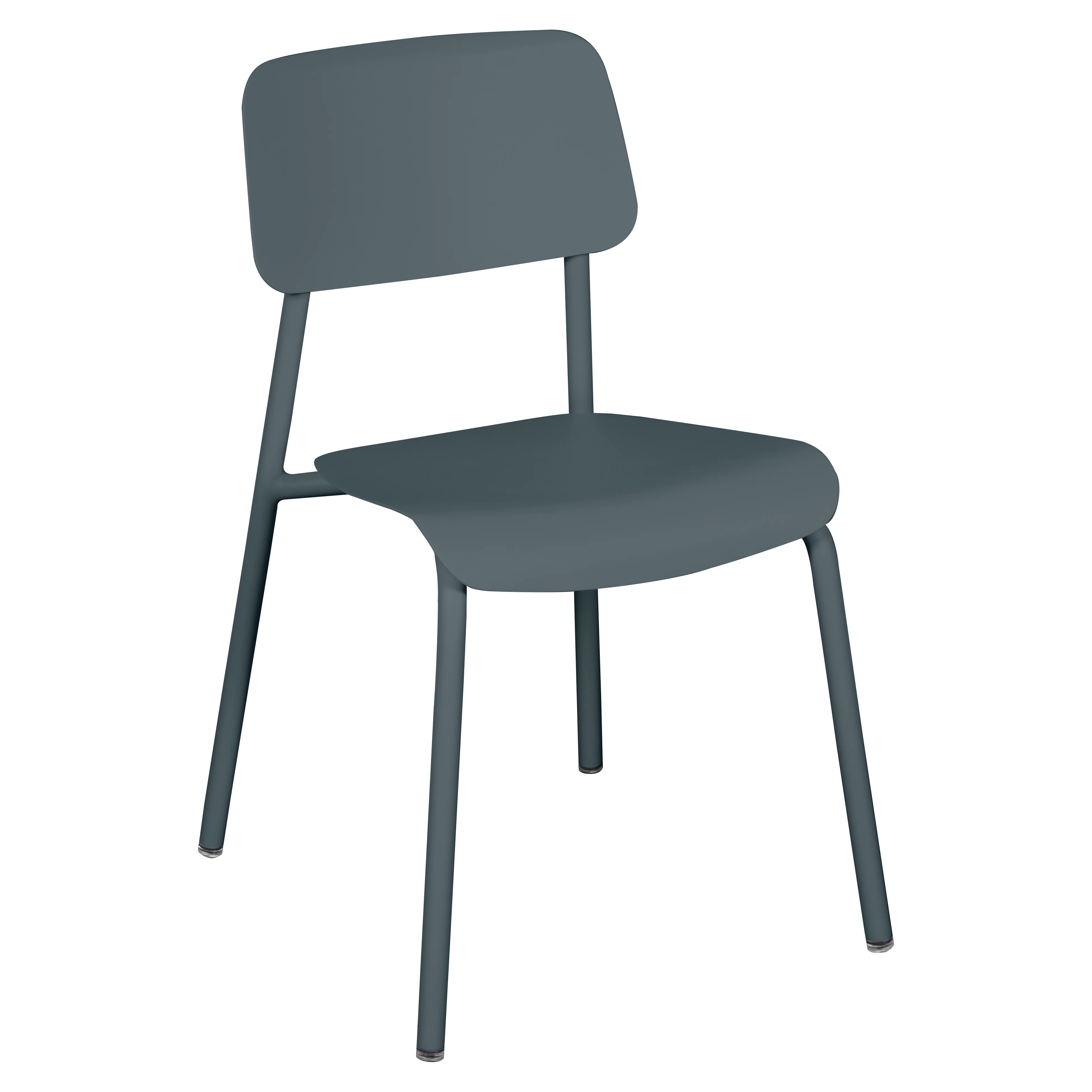 Tubular aluminium frame. Curved aluminium sheet seat. Curved aluminium sheet backrest