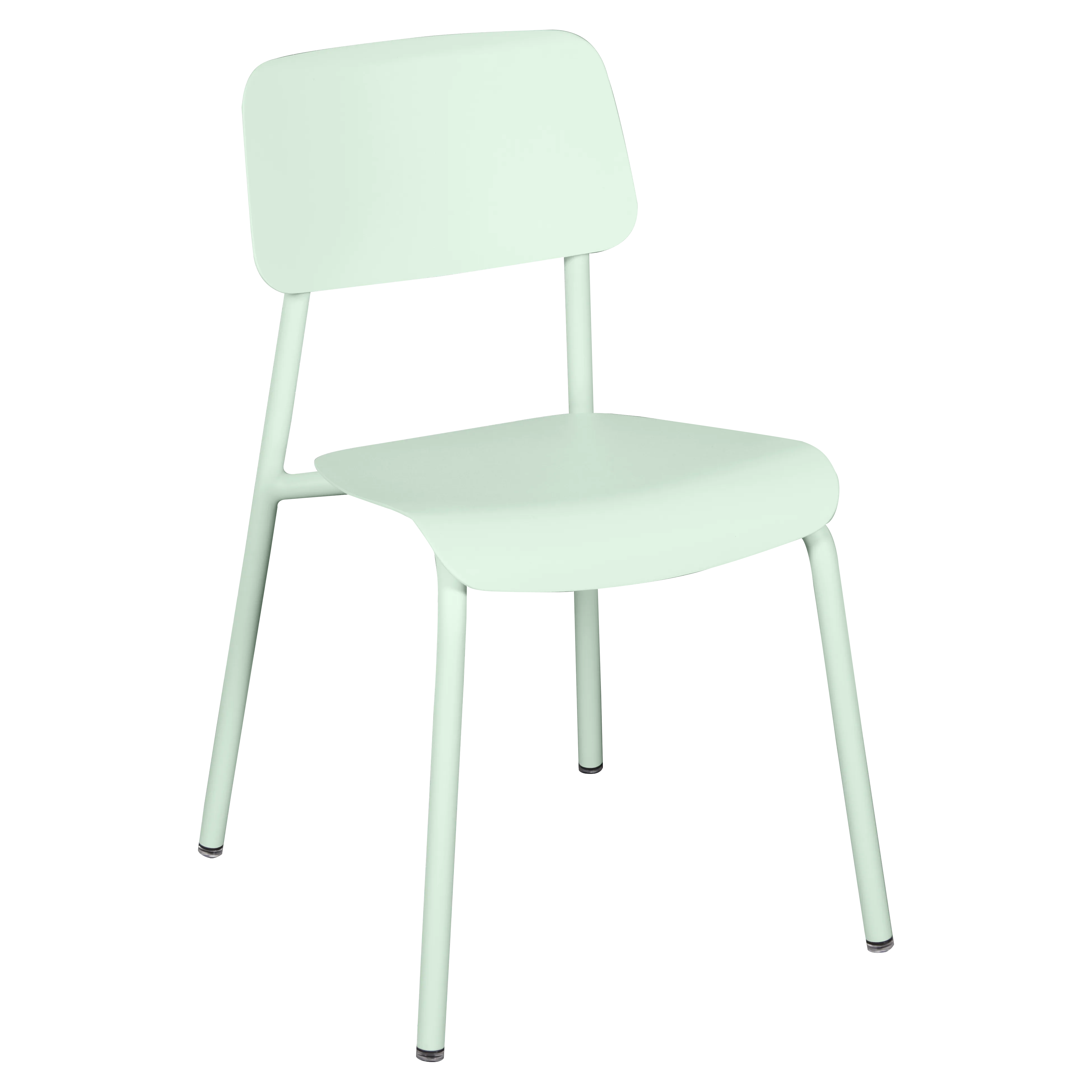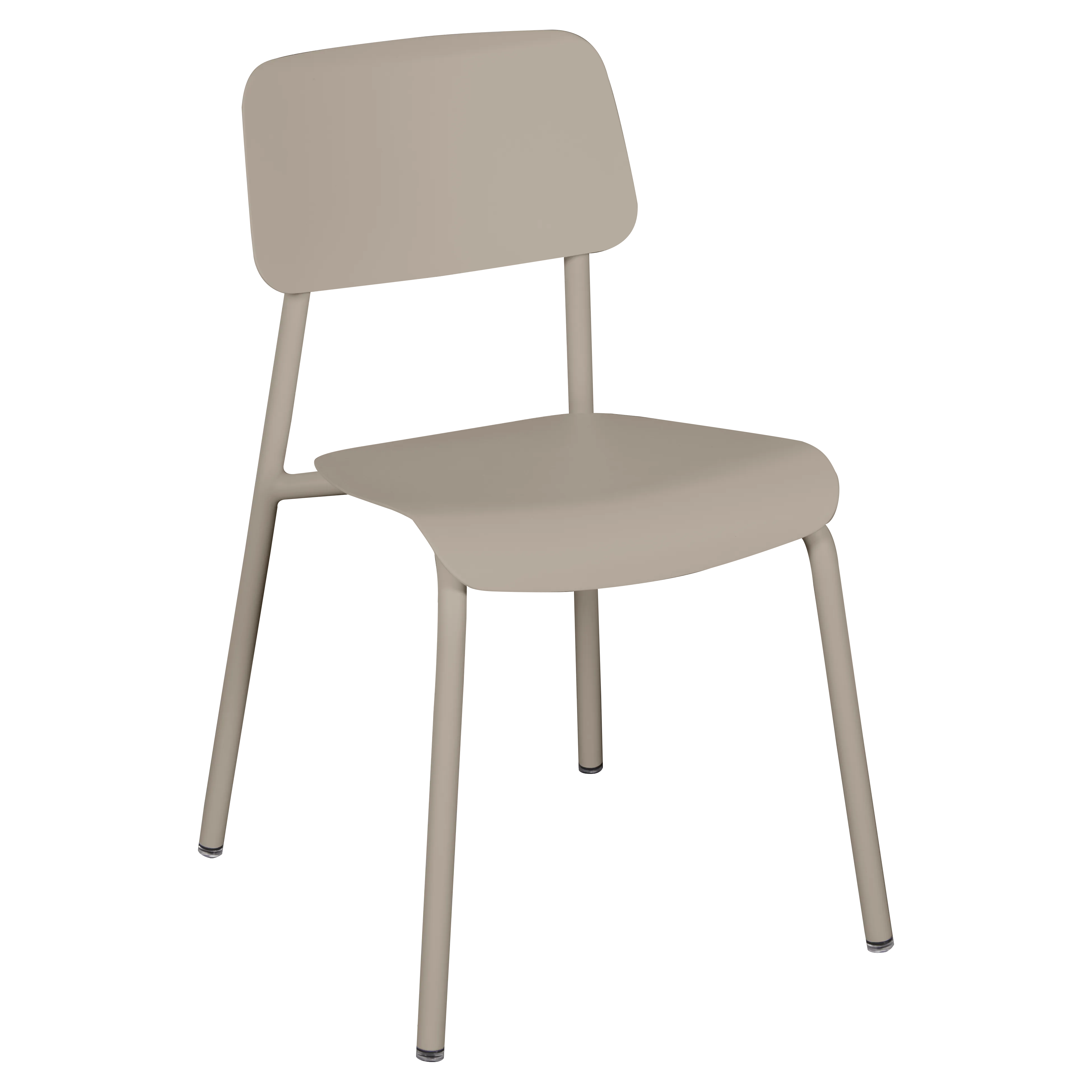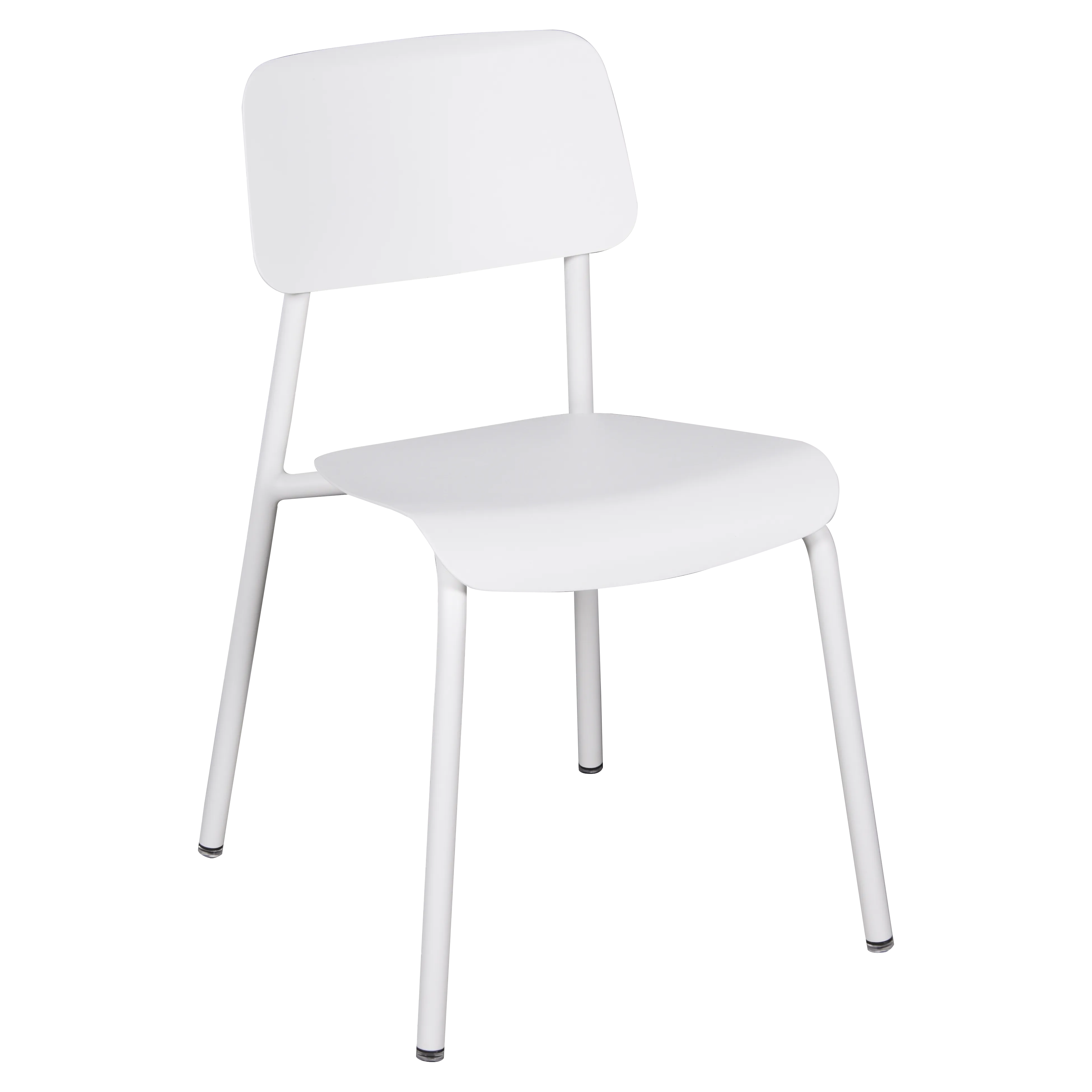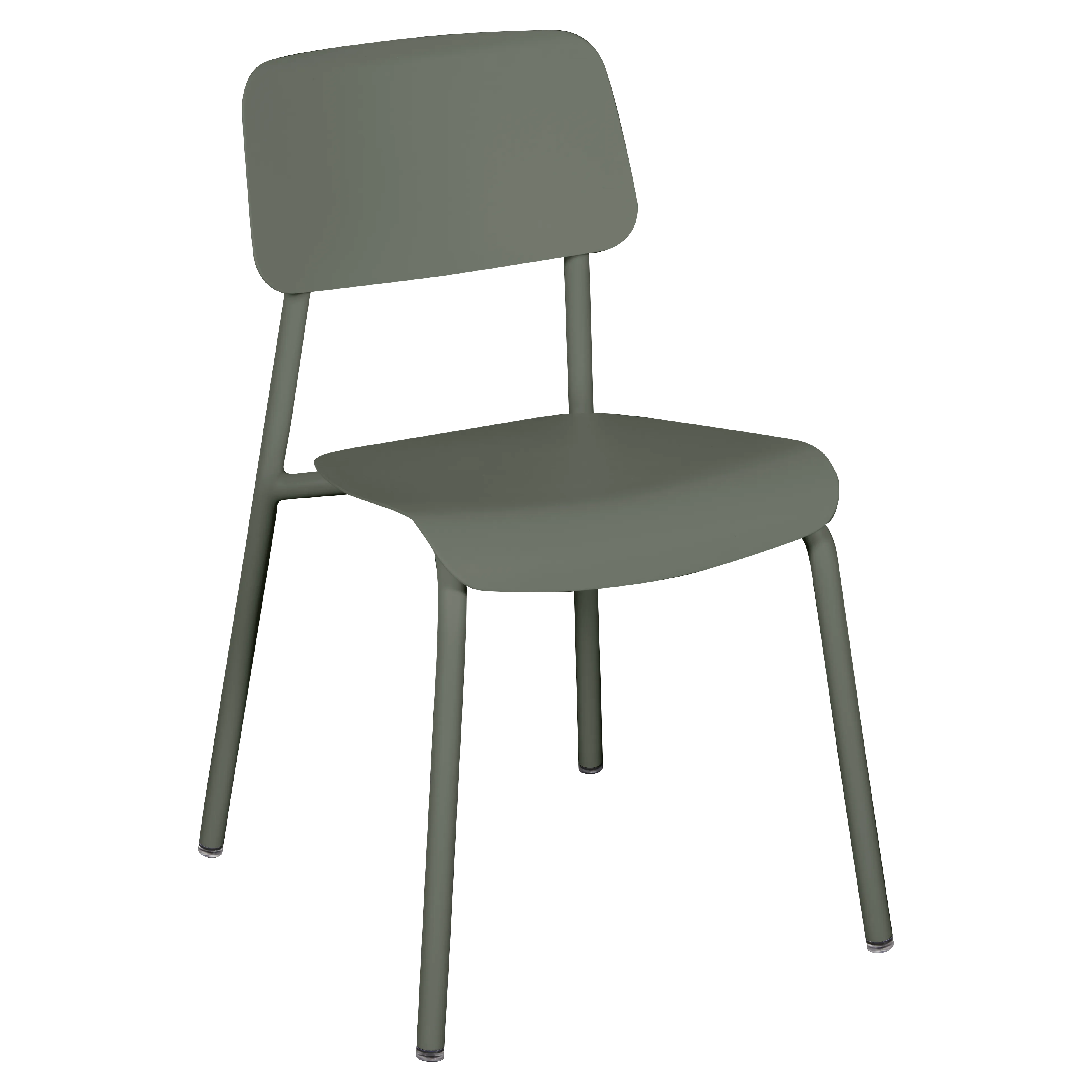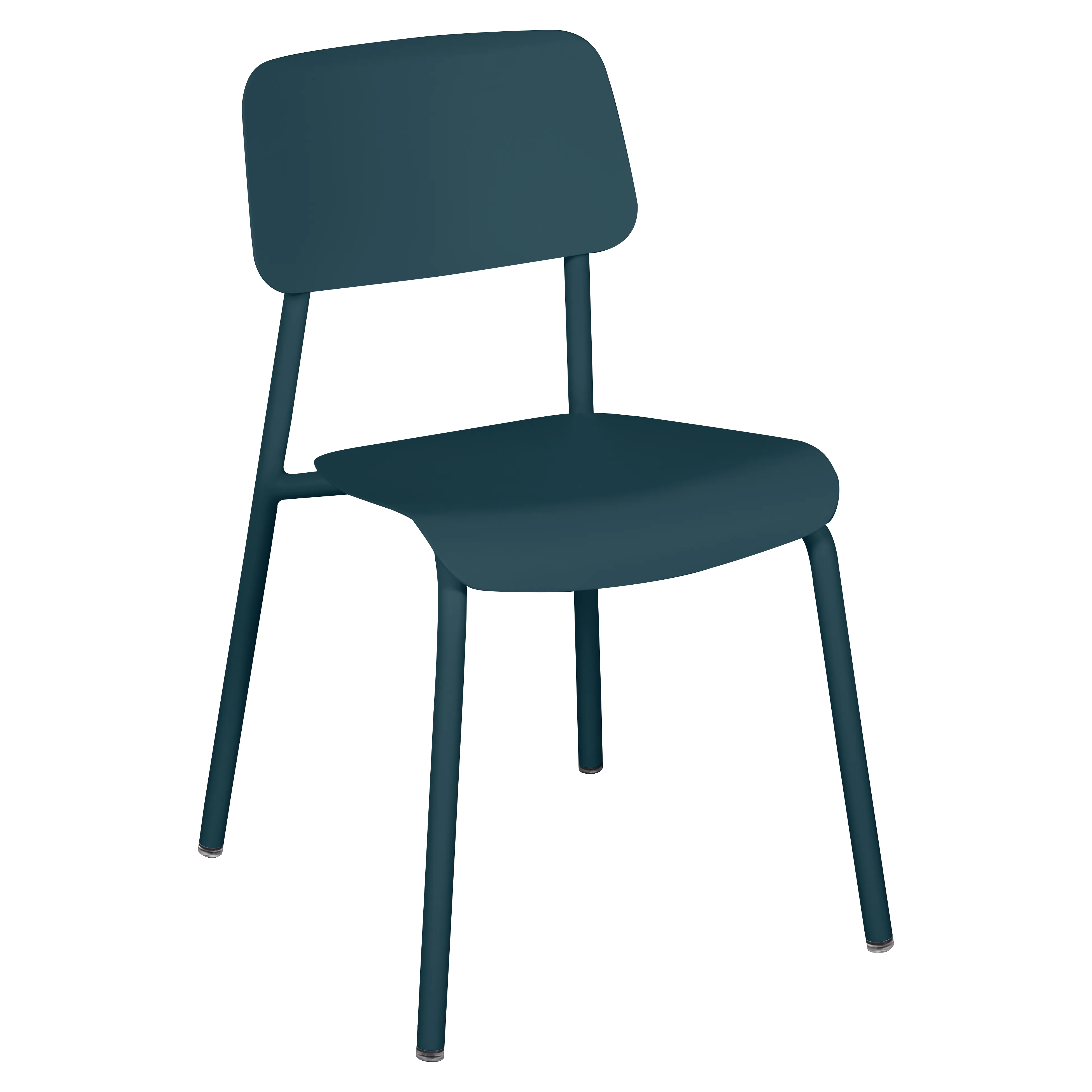 Tubular aluminium frame. Curved aluminium sheet seat. Curved aluminium sheet backrest