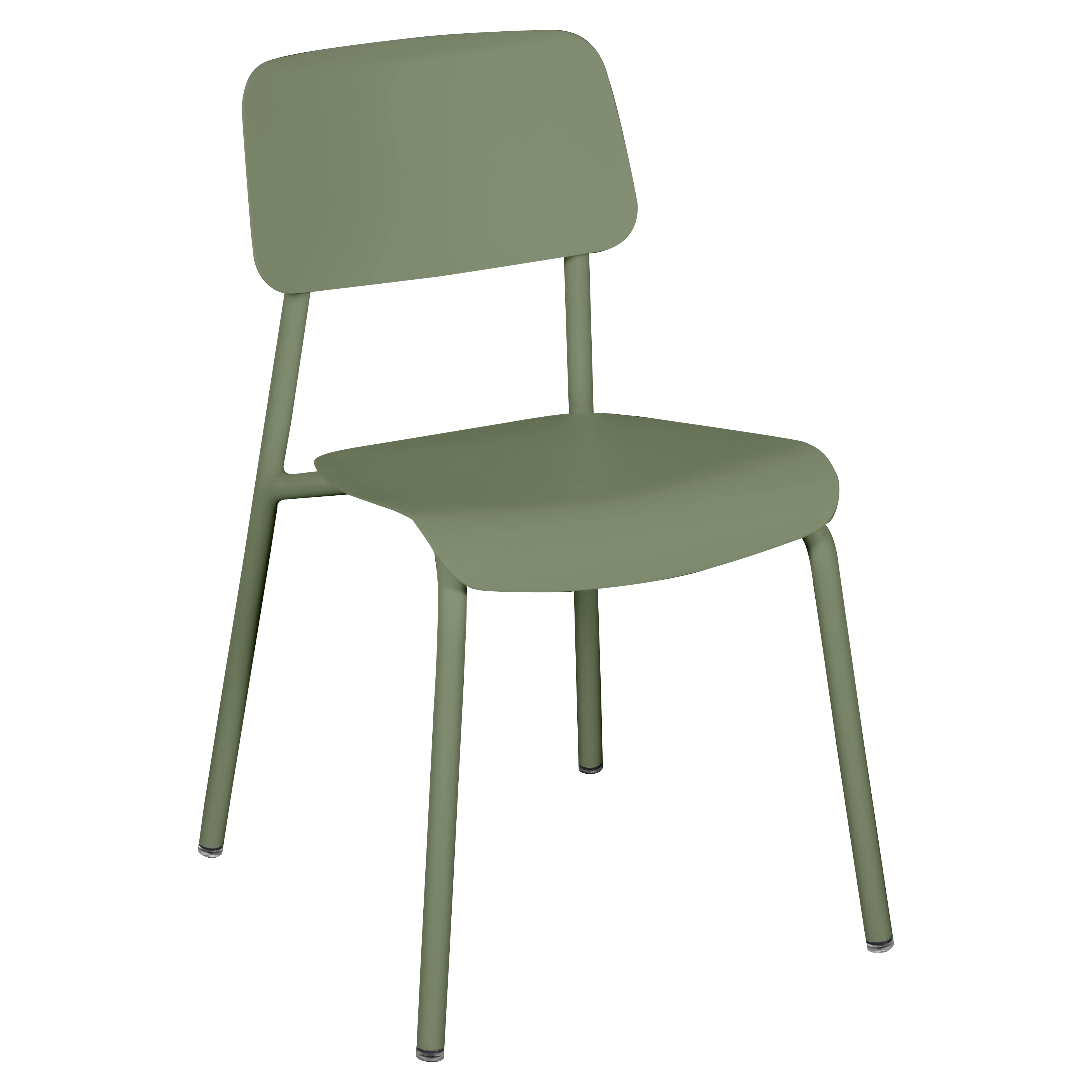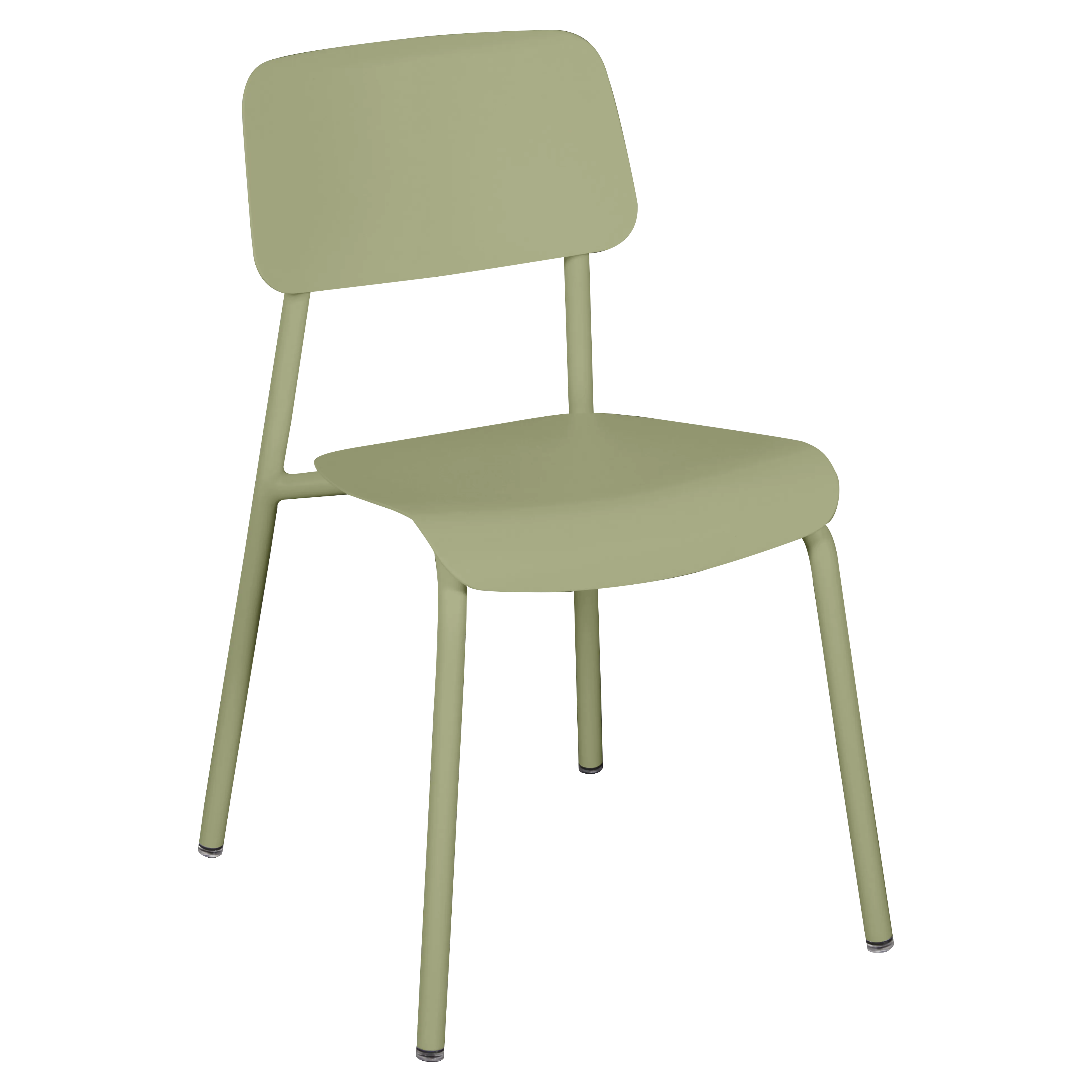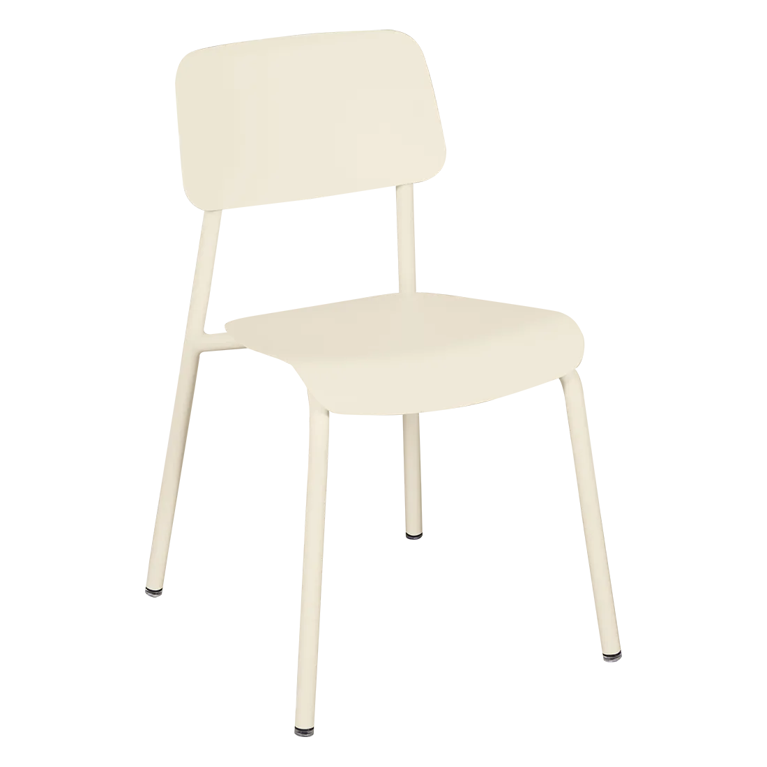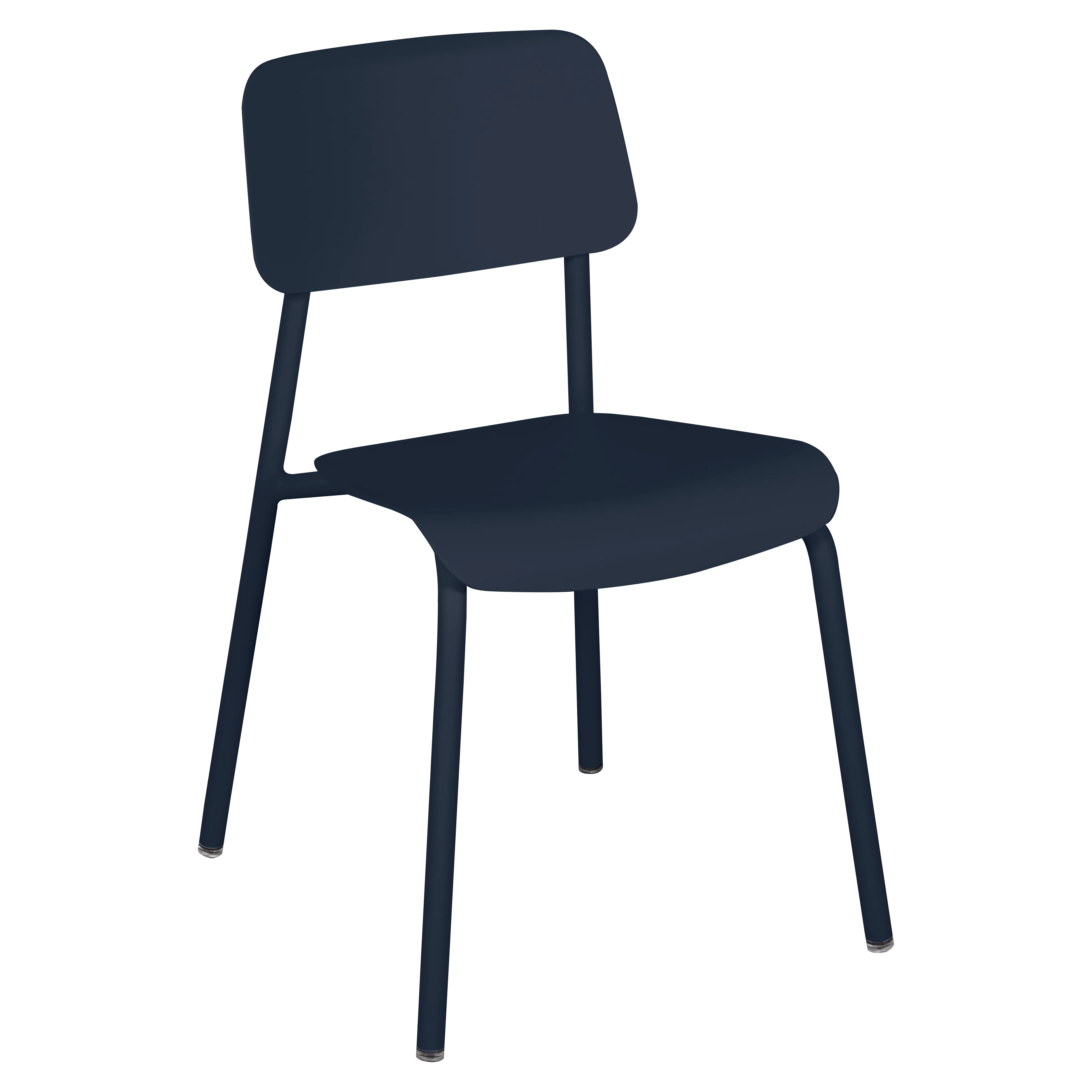 Tubular aluminium frame. Curved aluminium sheet seat. Curved aluminium sheet backrest