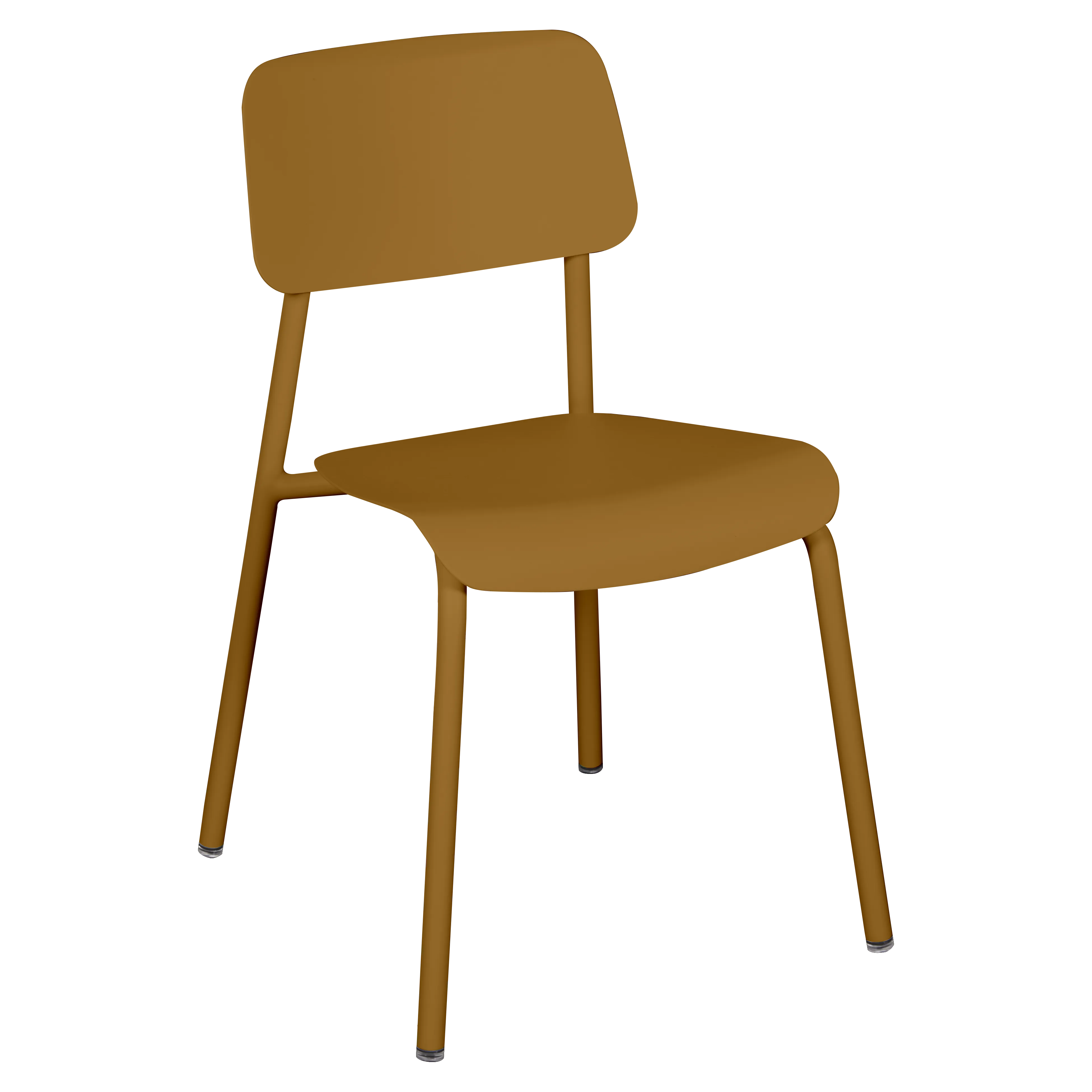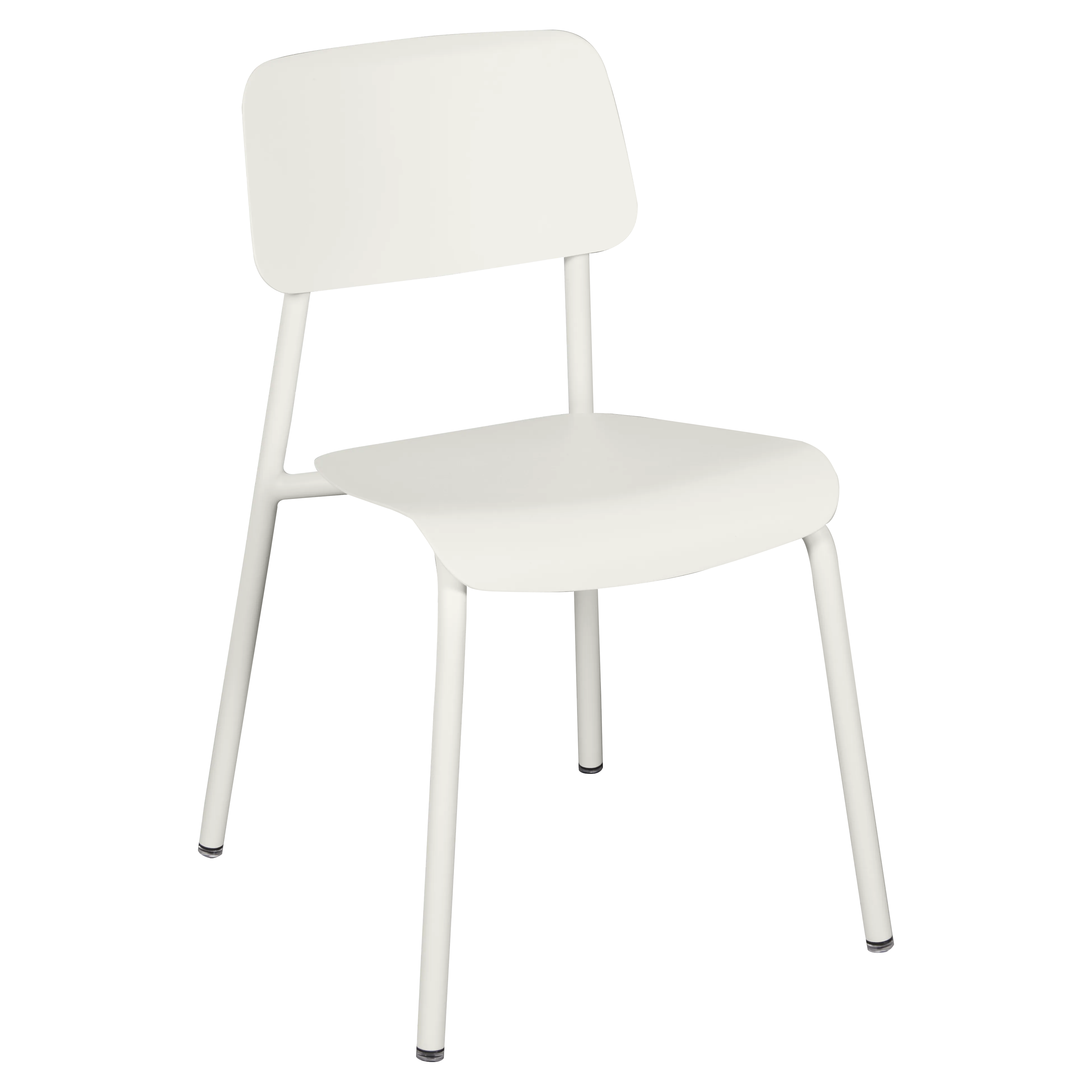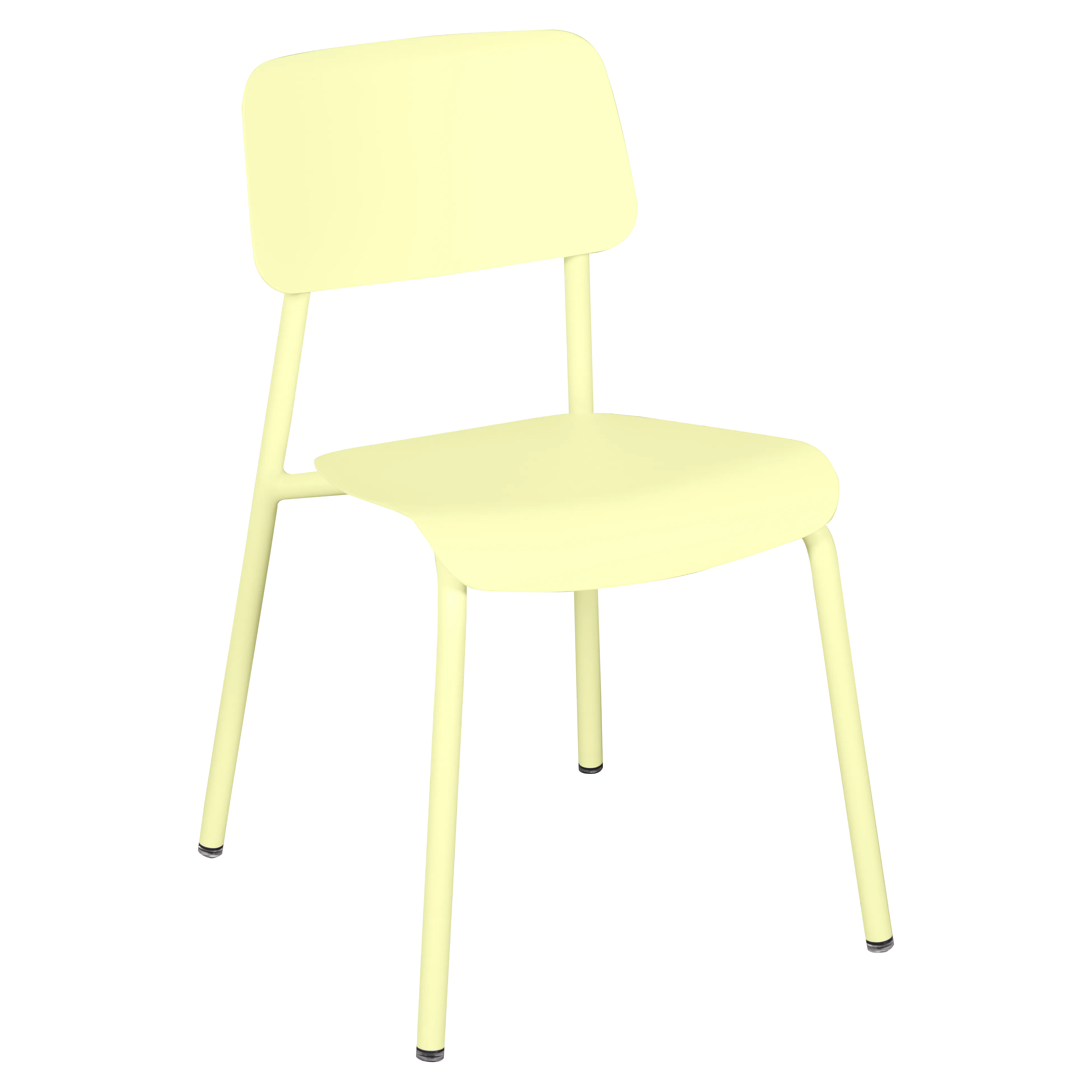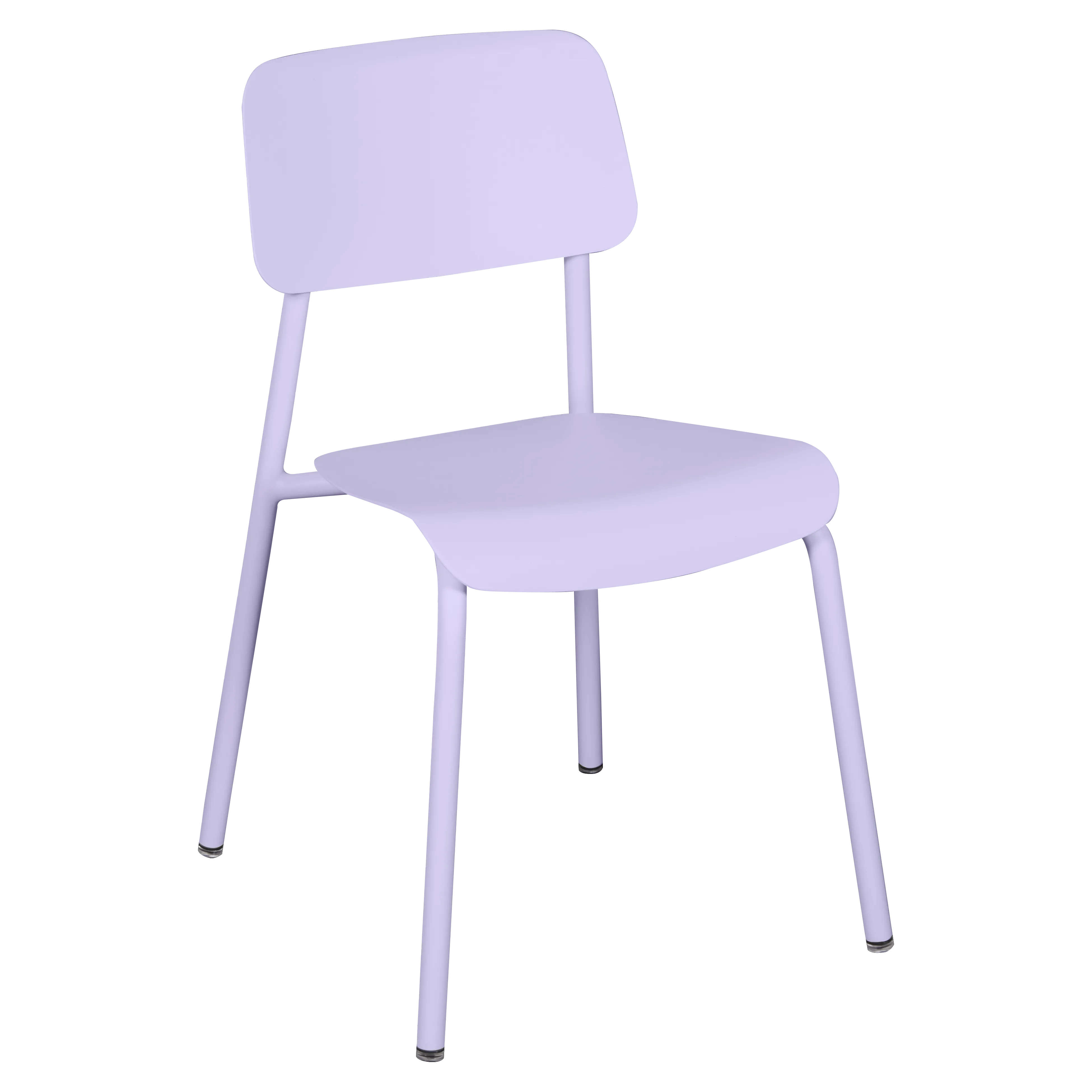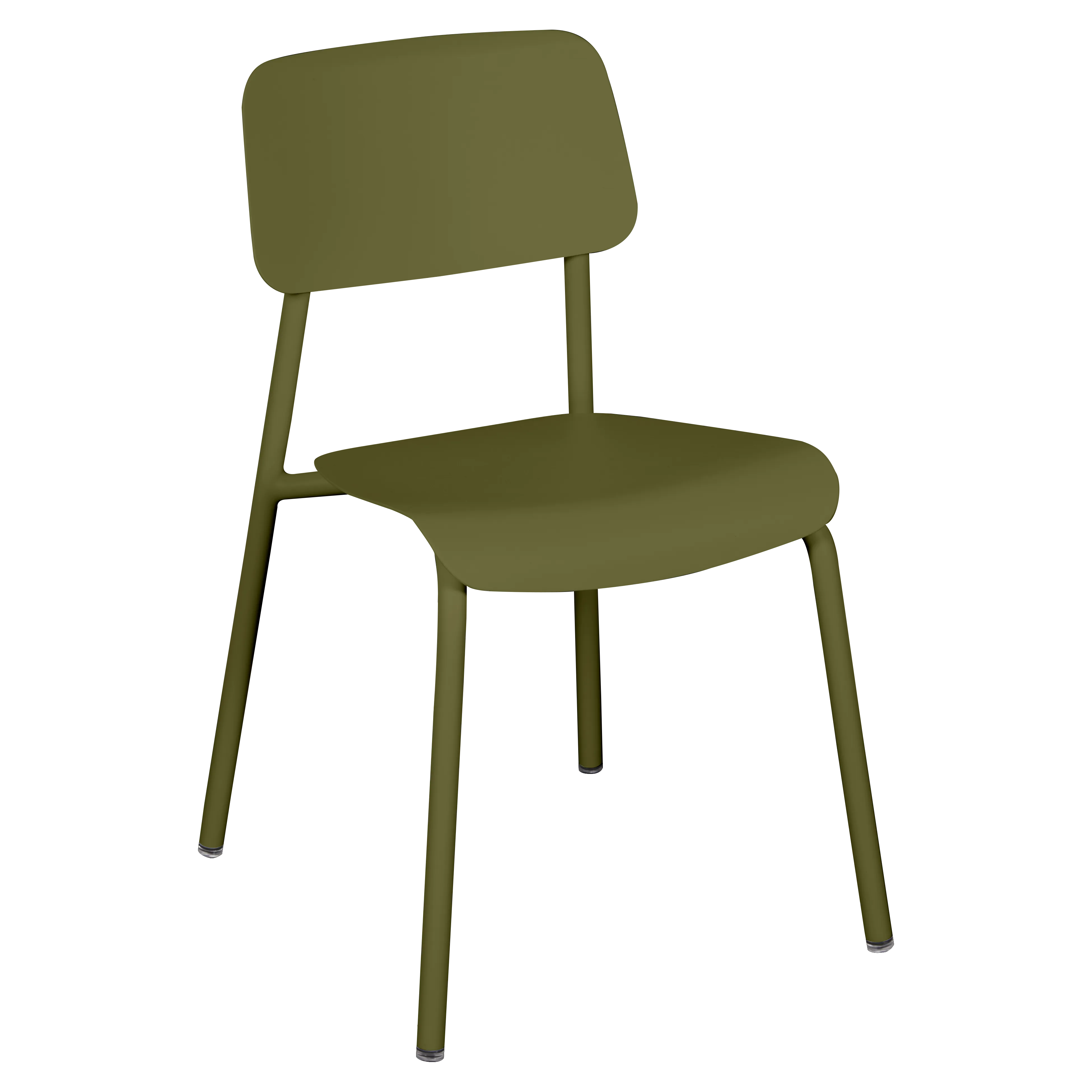 Tubular aluminium frame. Curved aluminium sheet seat. Curved aluminium sheet backrest