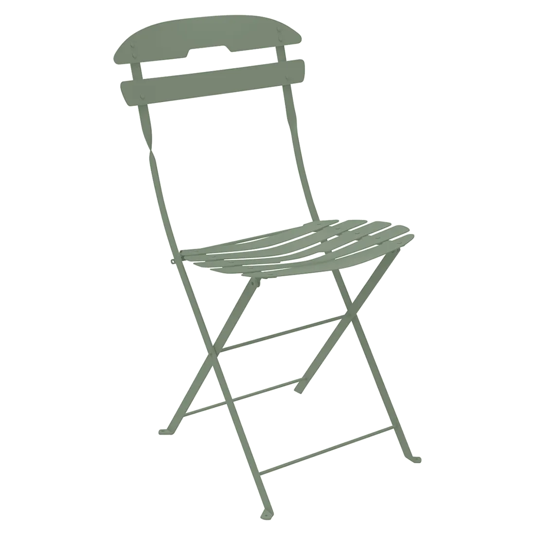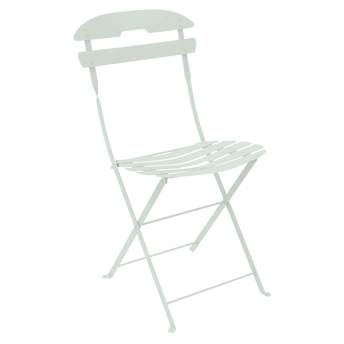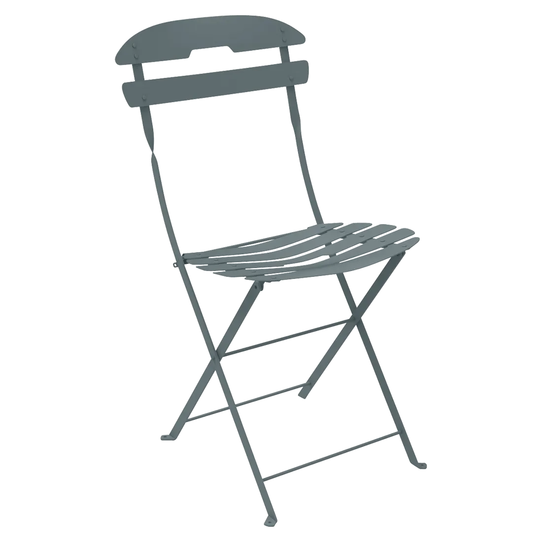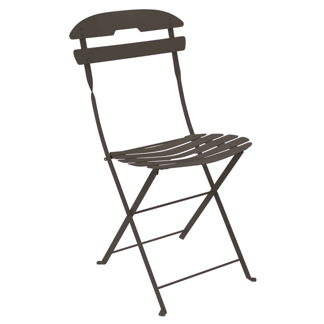 steel flat Frame Curved steel slats seat Curved steel slats backrest Plastic clips for safe folding and unfolding One-piece steel cross-pieces
