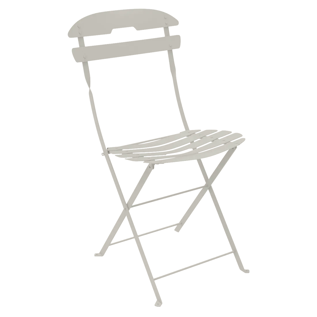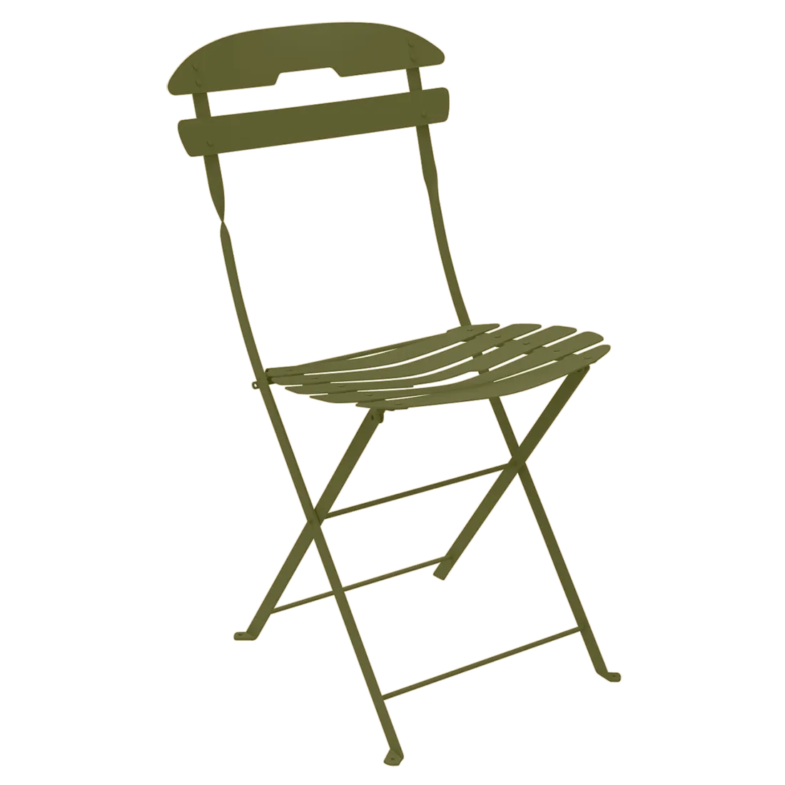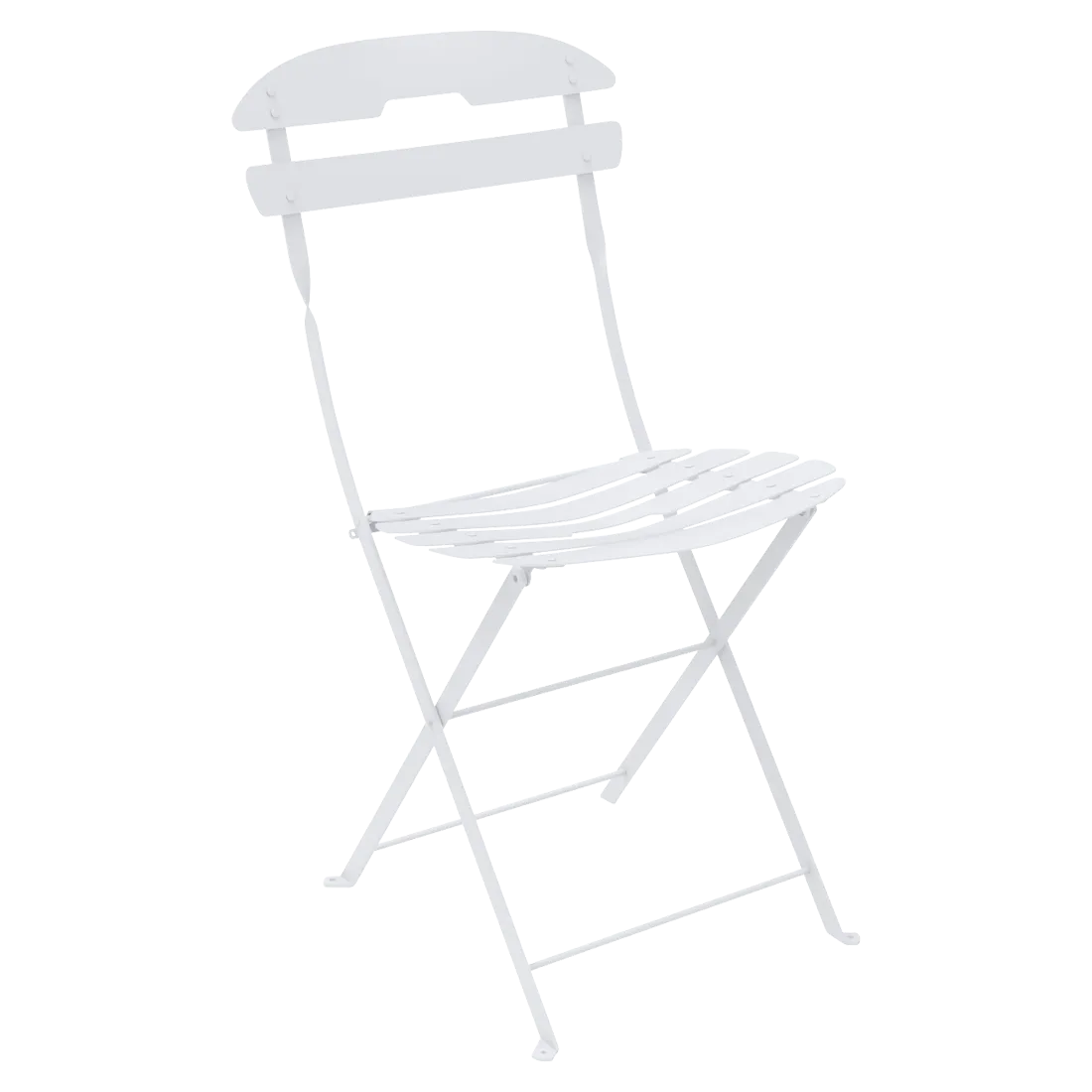 steel flat Frame Curved steel slats seat Curved steel slats backrest Plastic clips for safe folding and unfolding One-piece steel cross-pieces