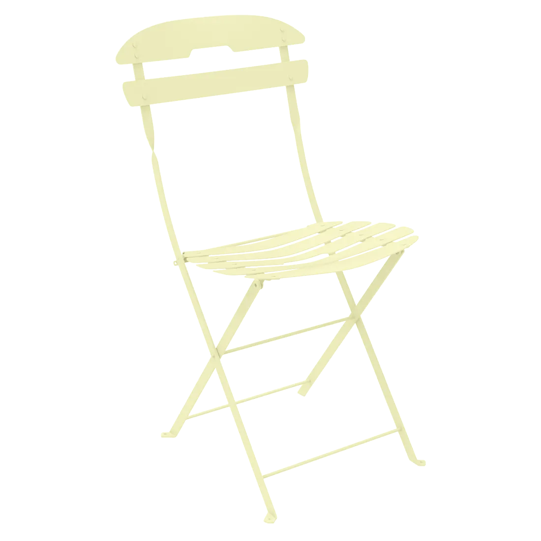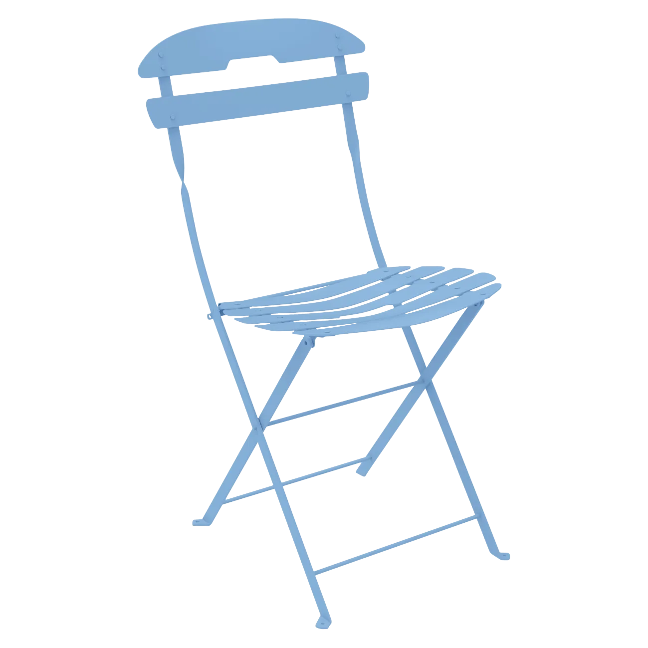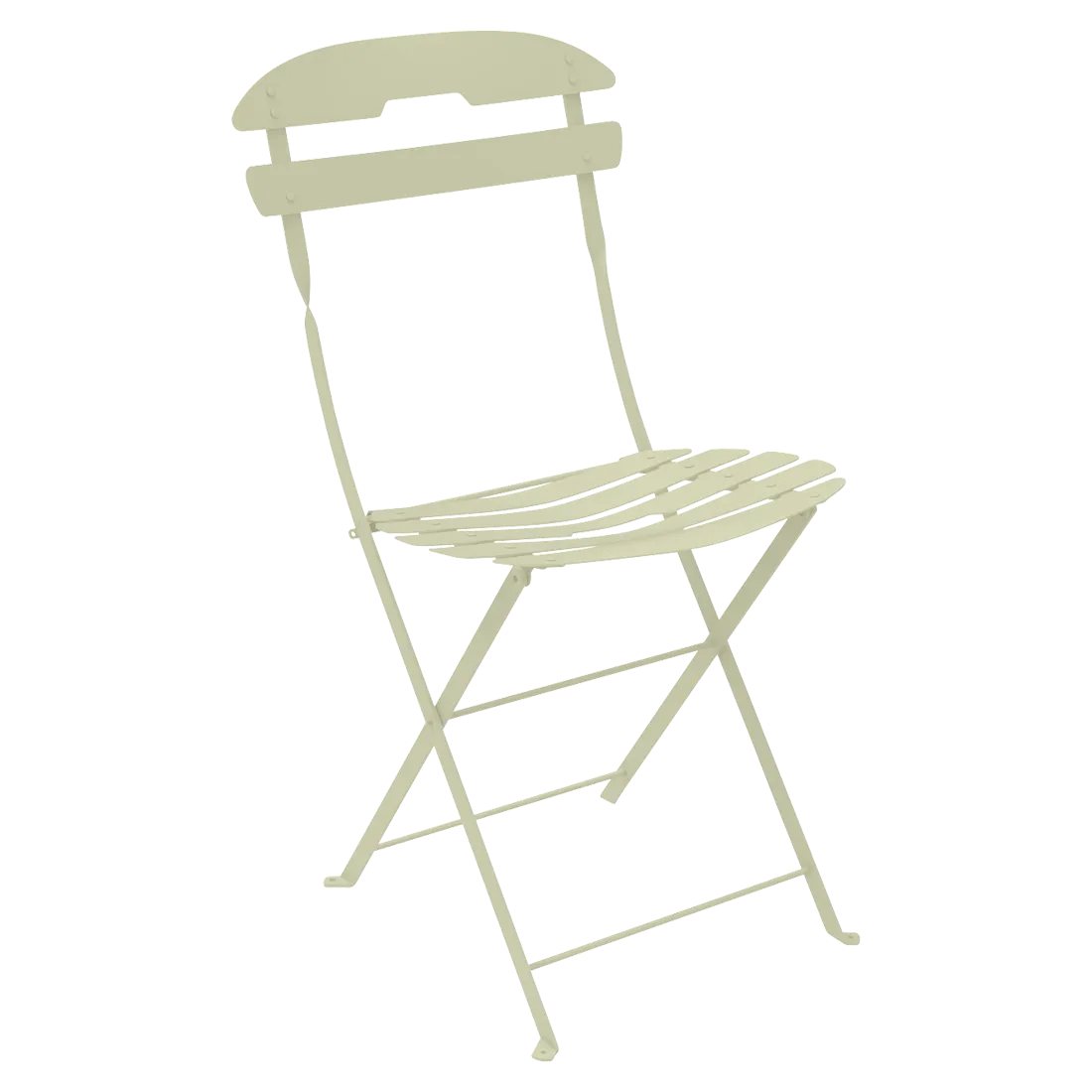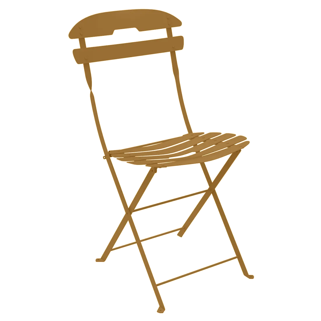 steel flat Frame Curved steel slats seat Curved steel slats backrest Plastic clips for safe folding and unfolding One-piece steel cross-pieces
