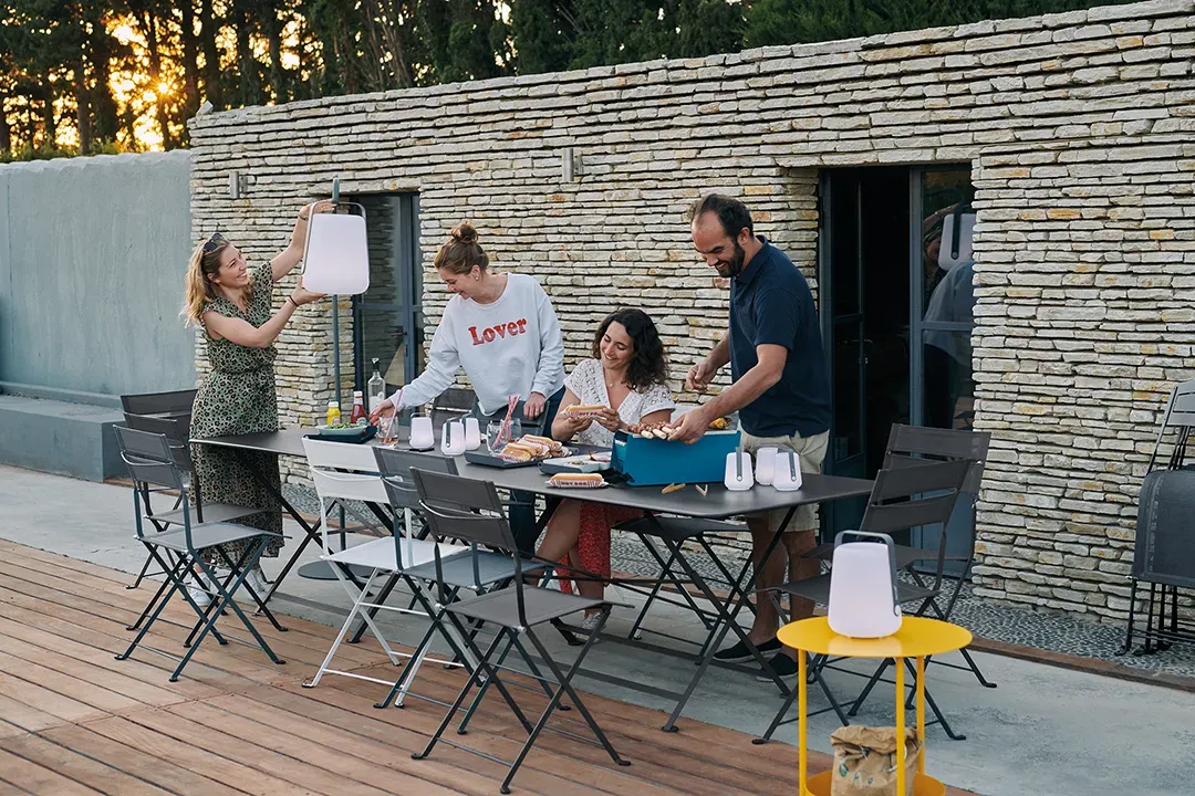 steel flat Frame - high-tenacity 100% polyester thread coated in solution-dyed PVC Duo or Stereo OTF Batyline® outdoor fabric seat - high-tenacity 100% polyester thread coated in solution-dyed PVC seat - high-tenacity 100% polyester thread coated in solution-dyed PVC Duo or Stereo OTF Batyline® outdoor fabric backrest - high-tenacity 100% polyester thread coated in solution-dyed PVC backrest