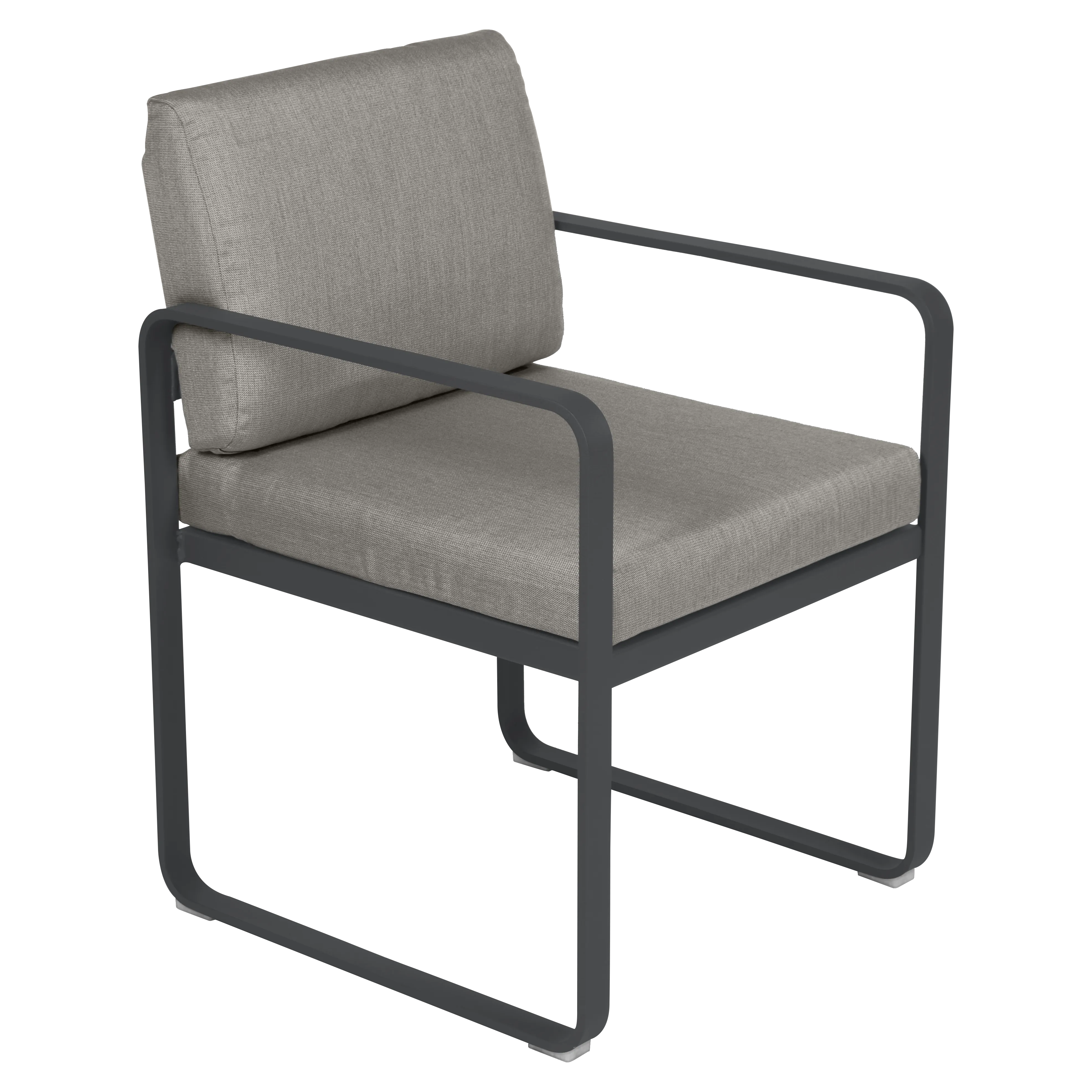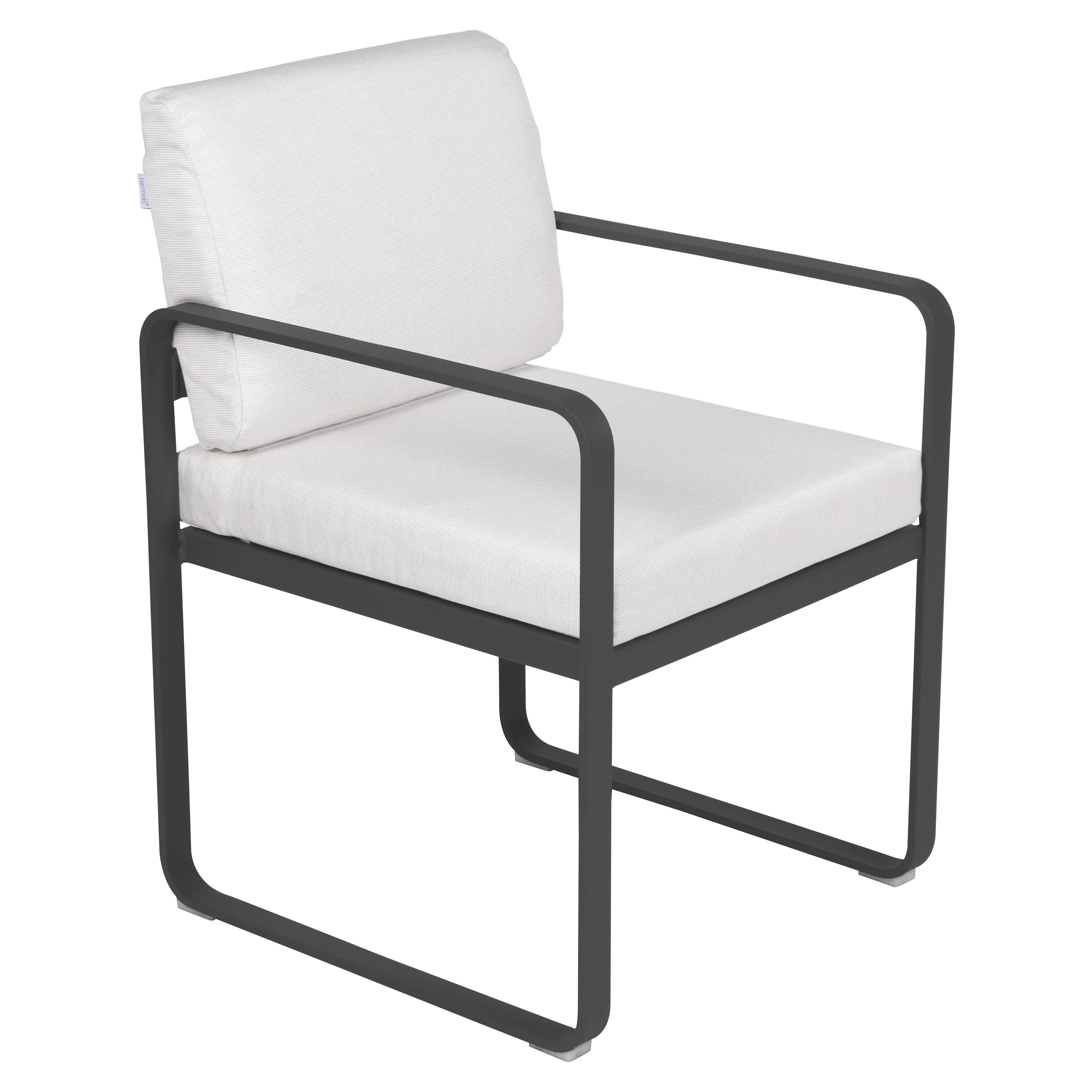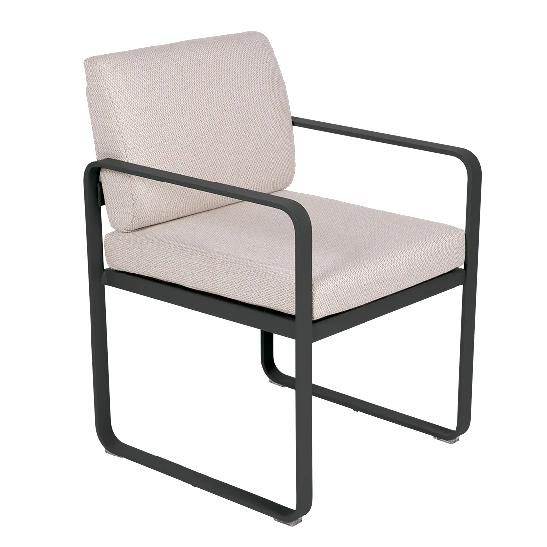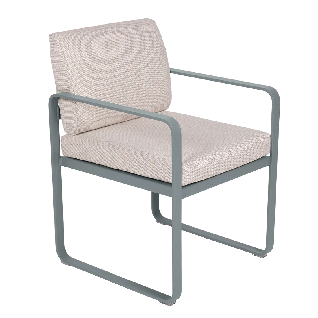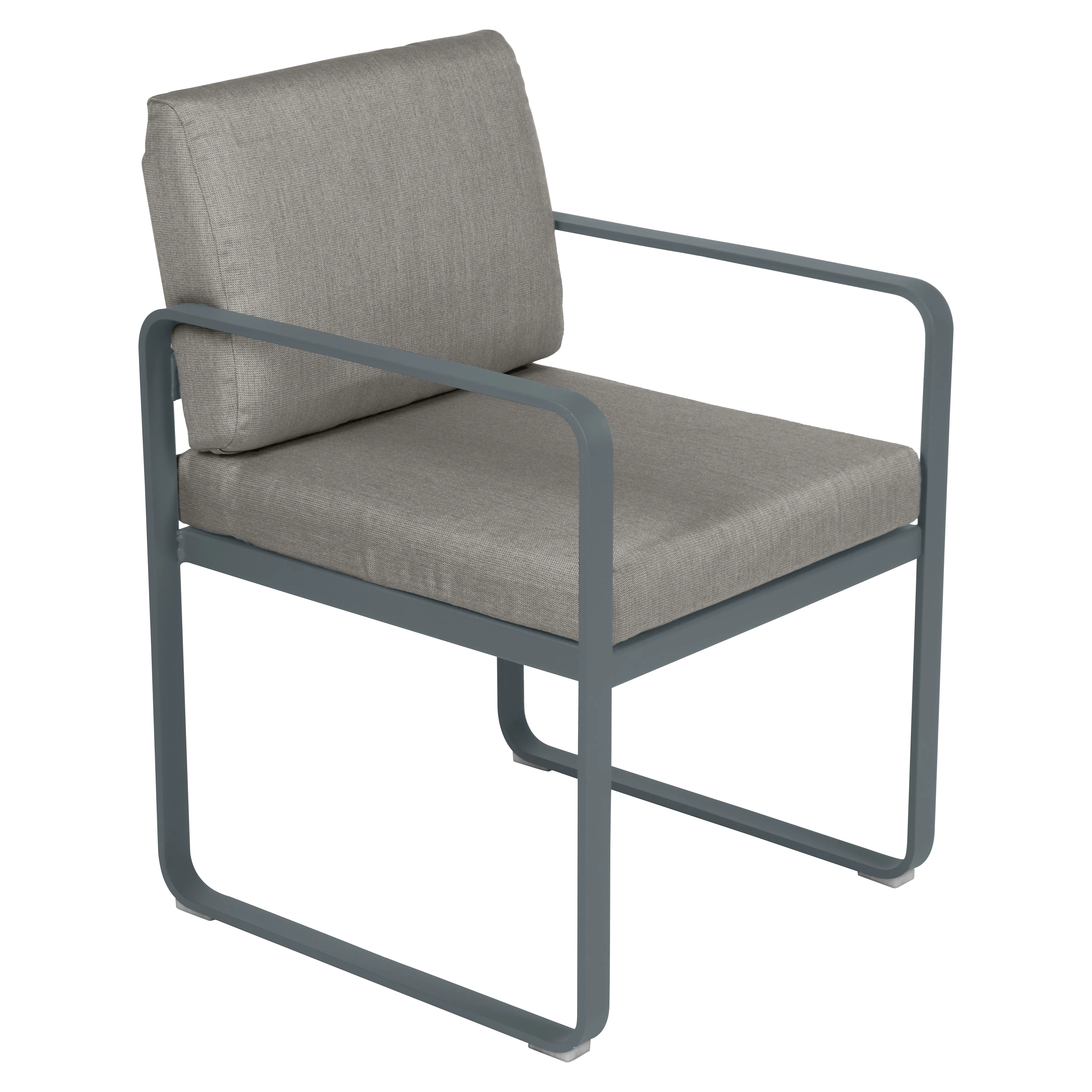aluminium flat Frame Perforated aluminium sheet seat Perforated aluminium sheet backrest aluminium flat armrests outdoor fabric solution-dyed acrylic Sunbrella® finish Seat foam filling: High resilience polyurethane Backrest foam filling: High resilience polyurethane