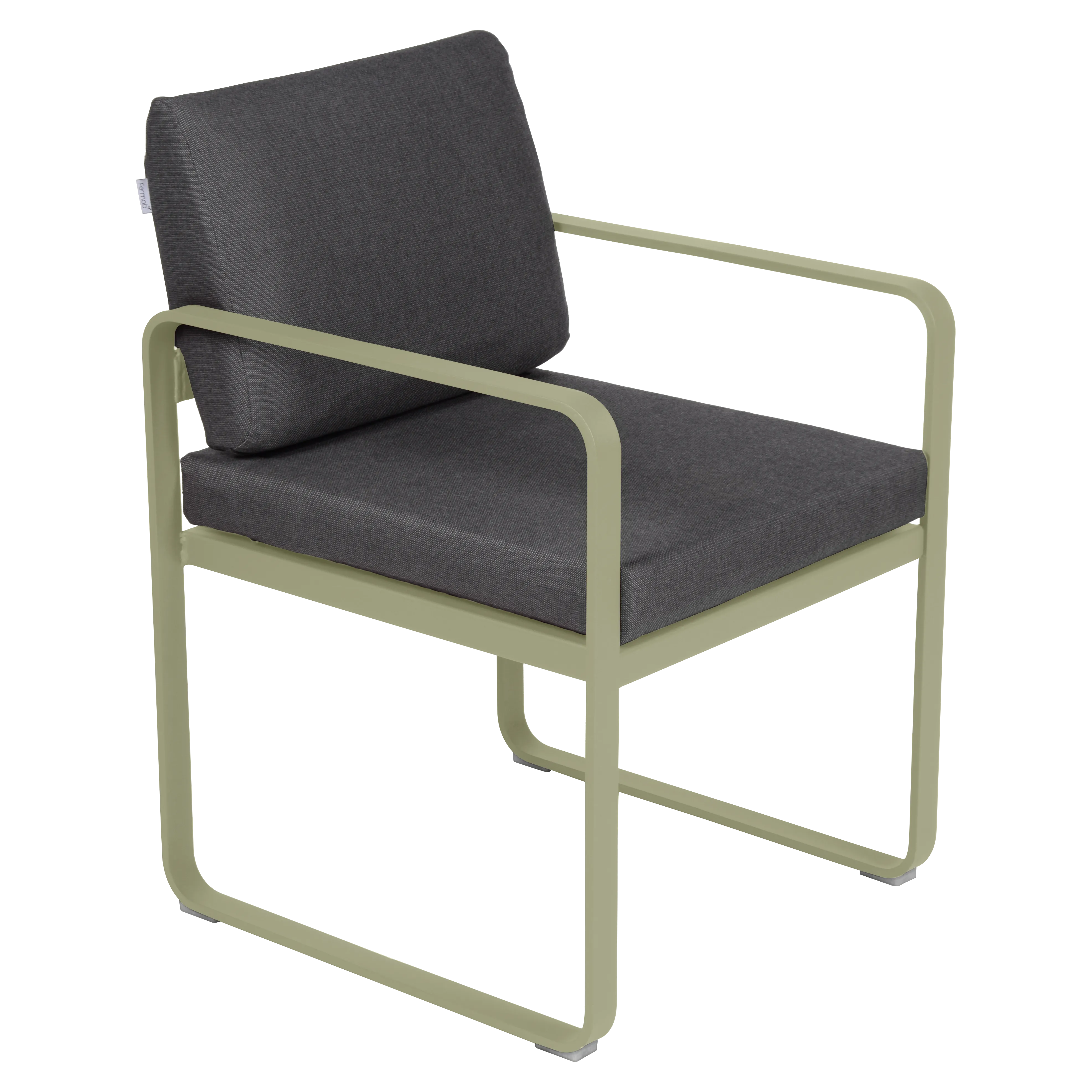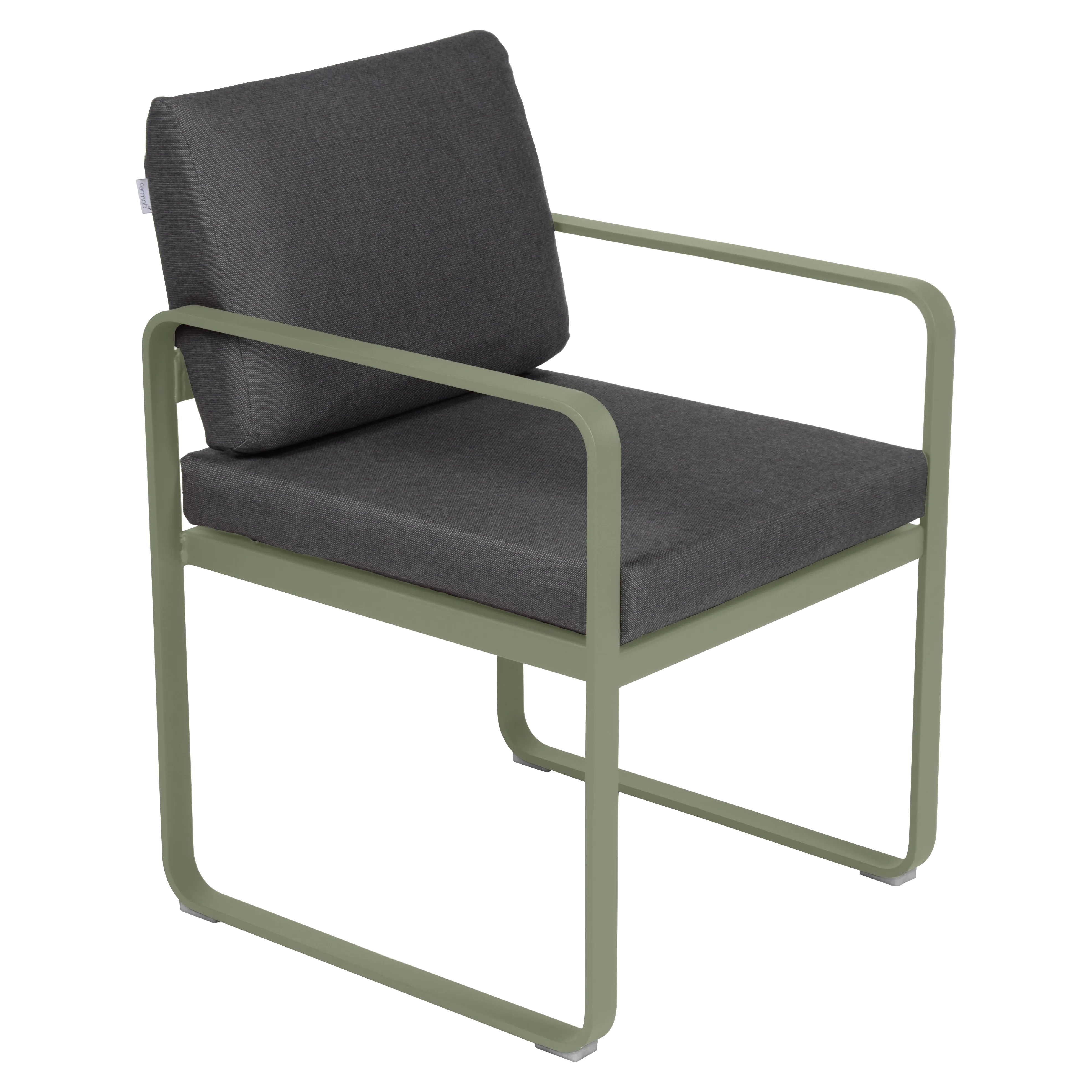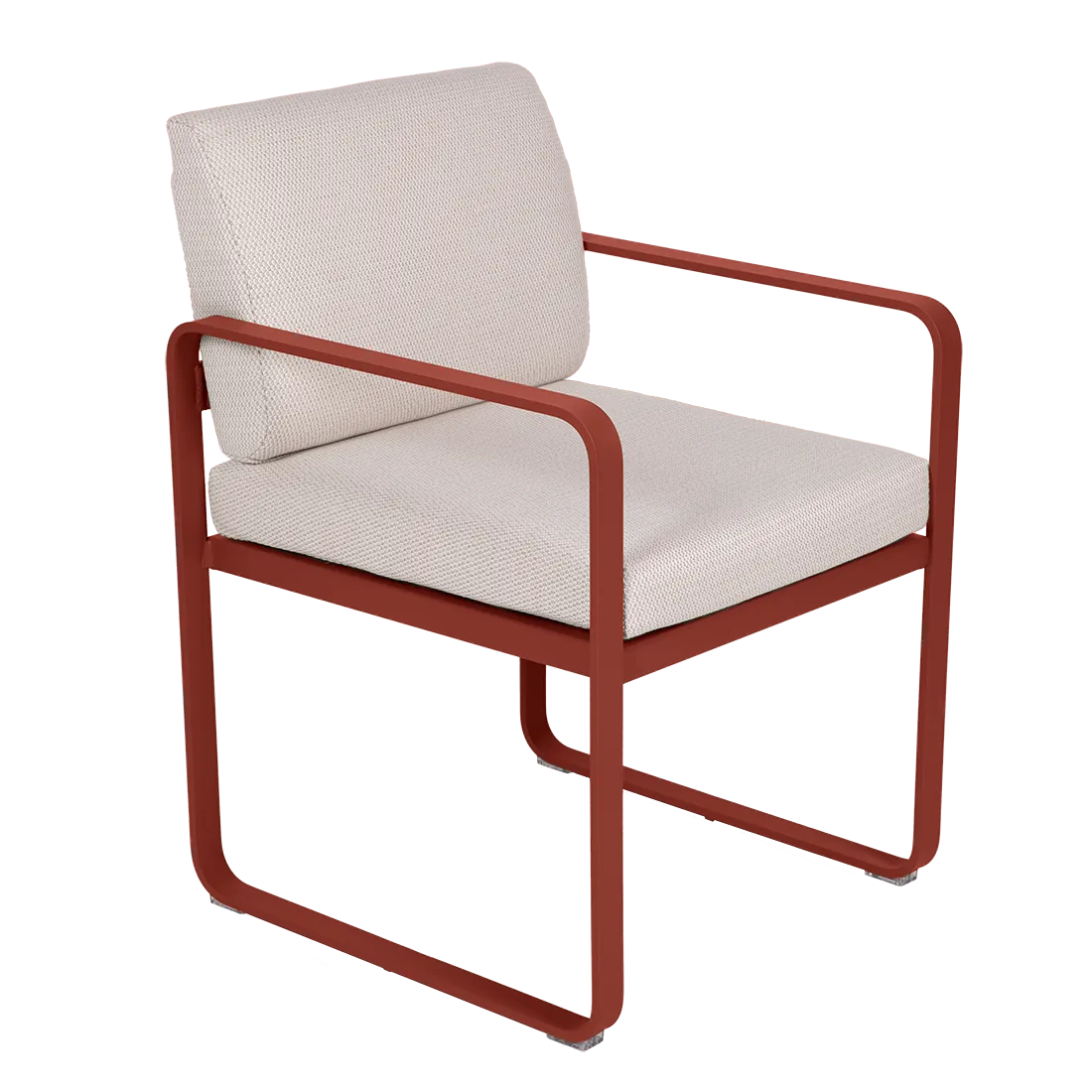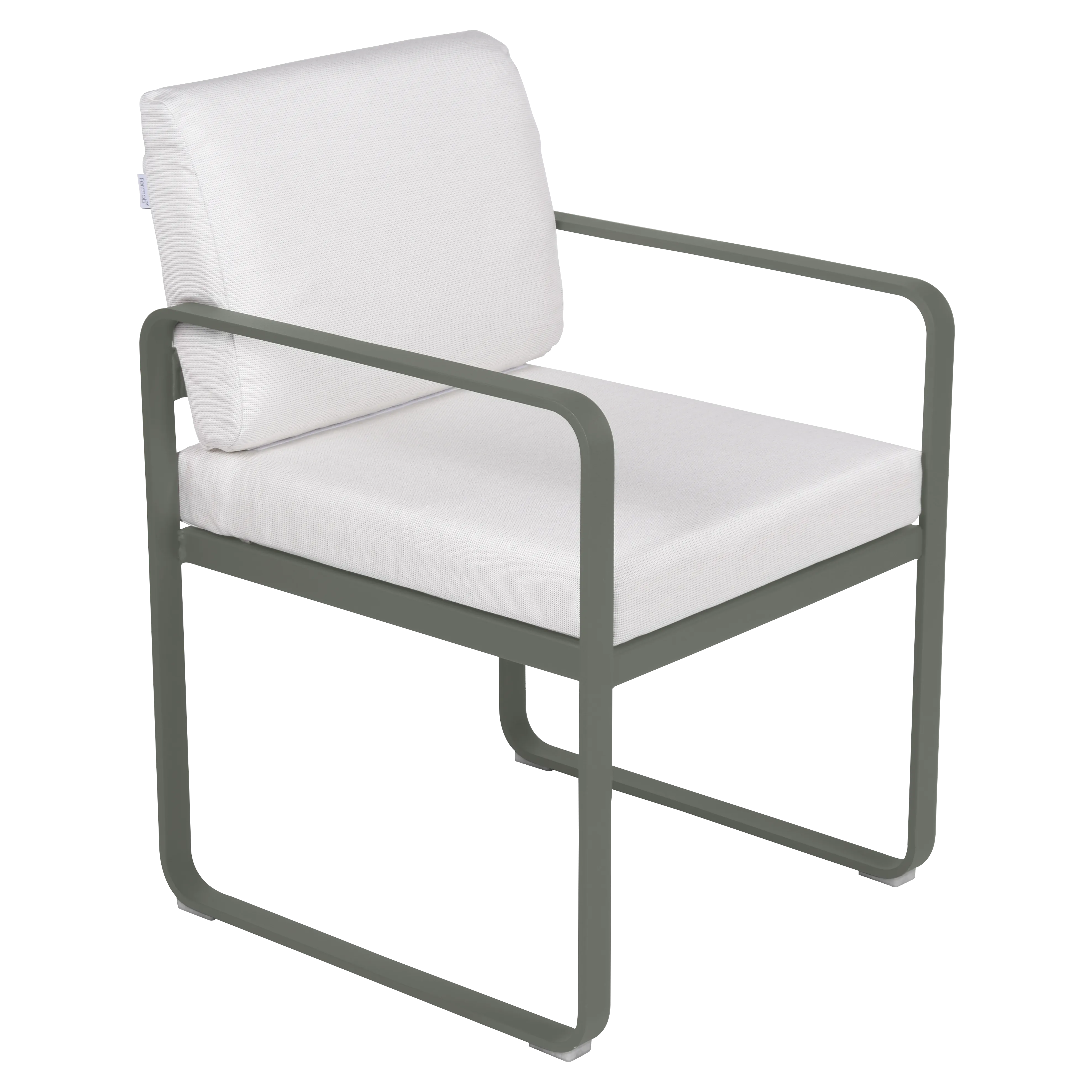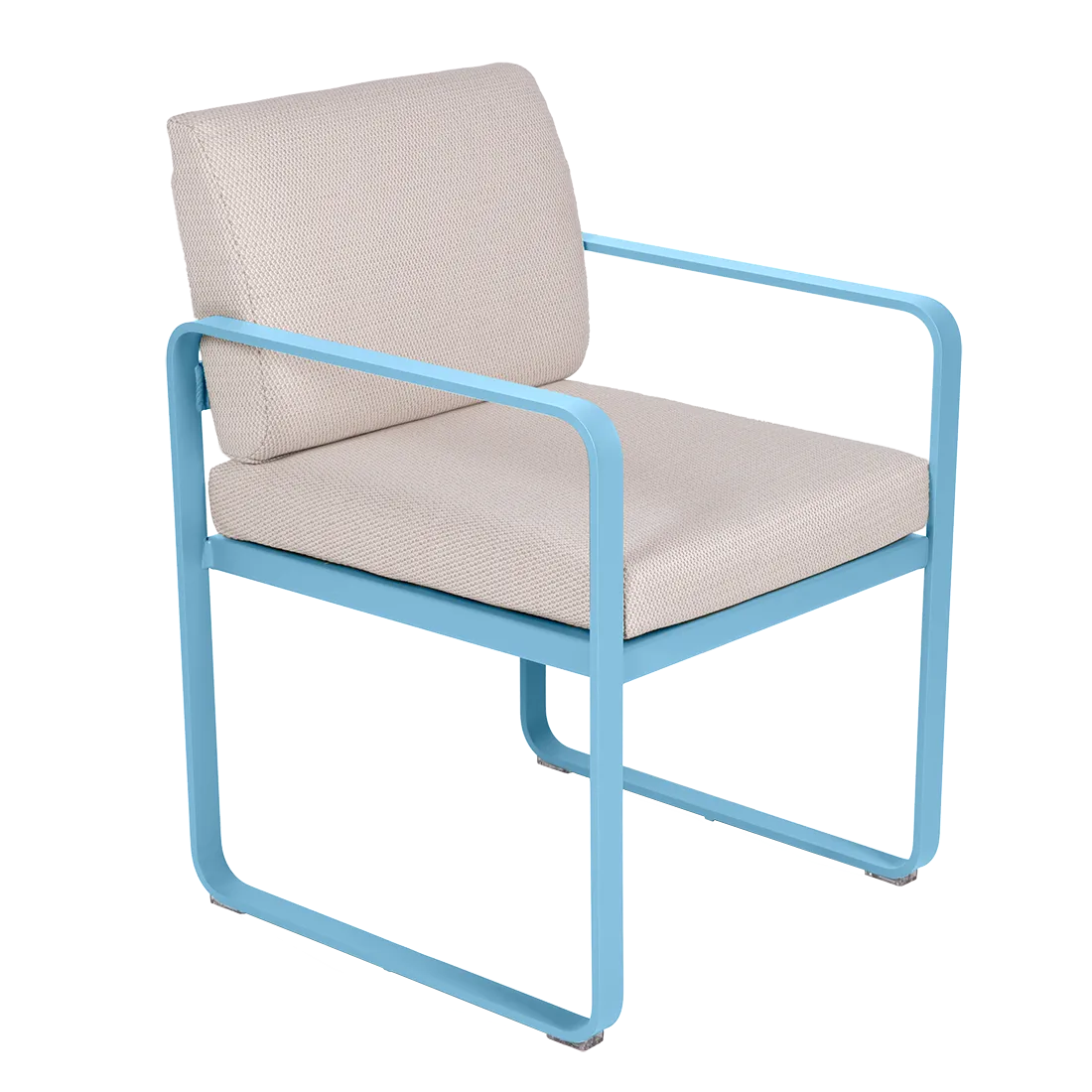 aluminium flat Frame Perforated aluminium sheet seat Perforated aluminium sheet backrest aluminium flat armrests outdoor fabric solution-dyed acrylic Sunbrella® finish Seat foam filling: High resilience polyurethane Backrest foam filling: High resilience polyurethane