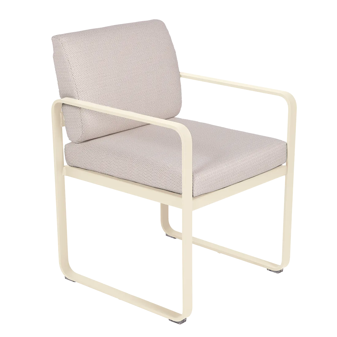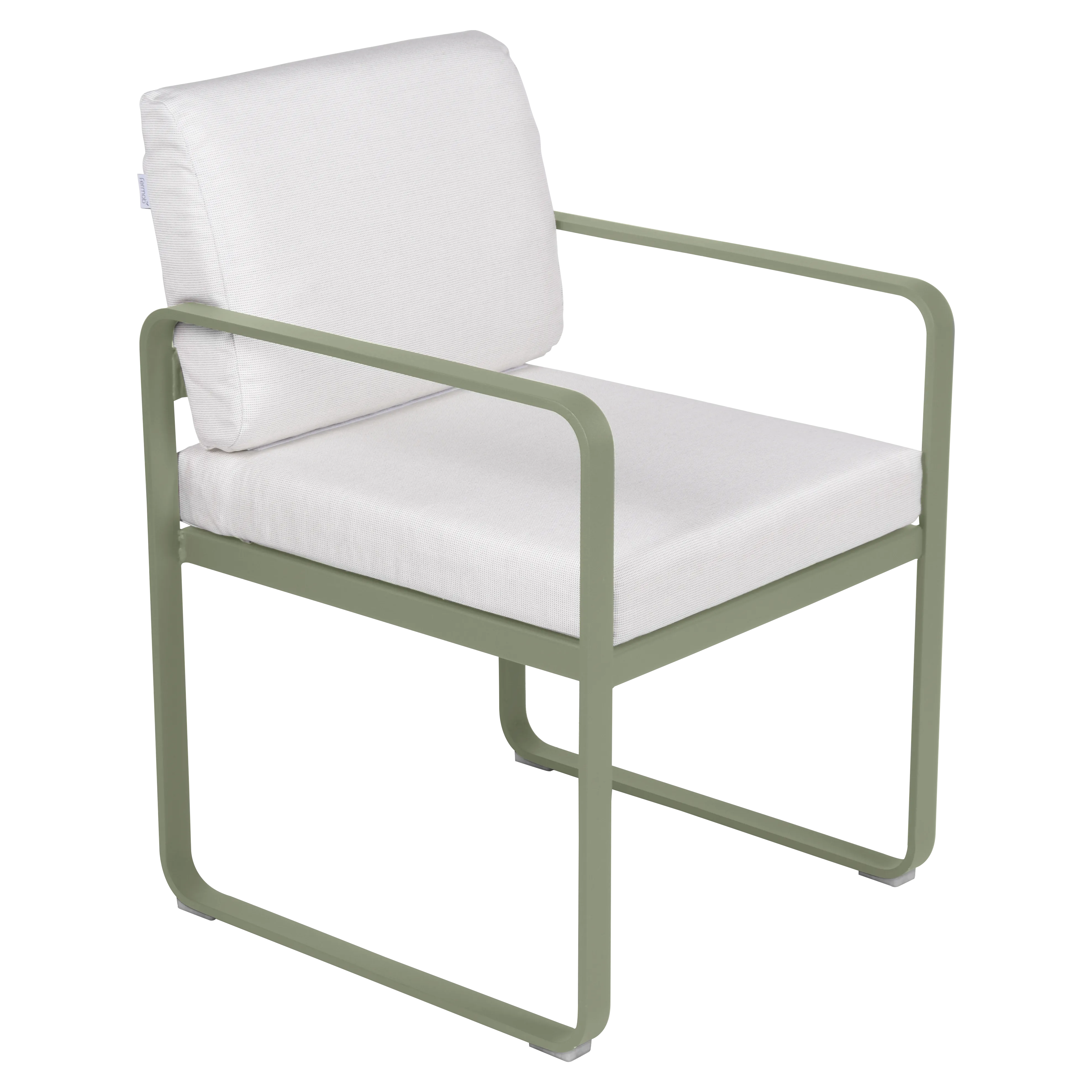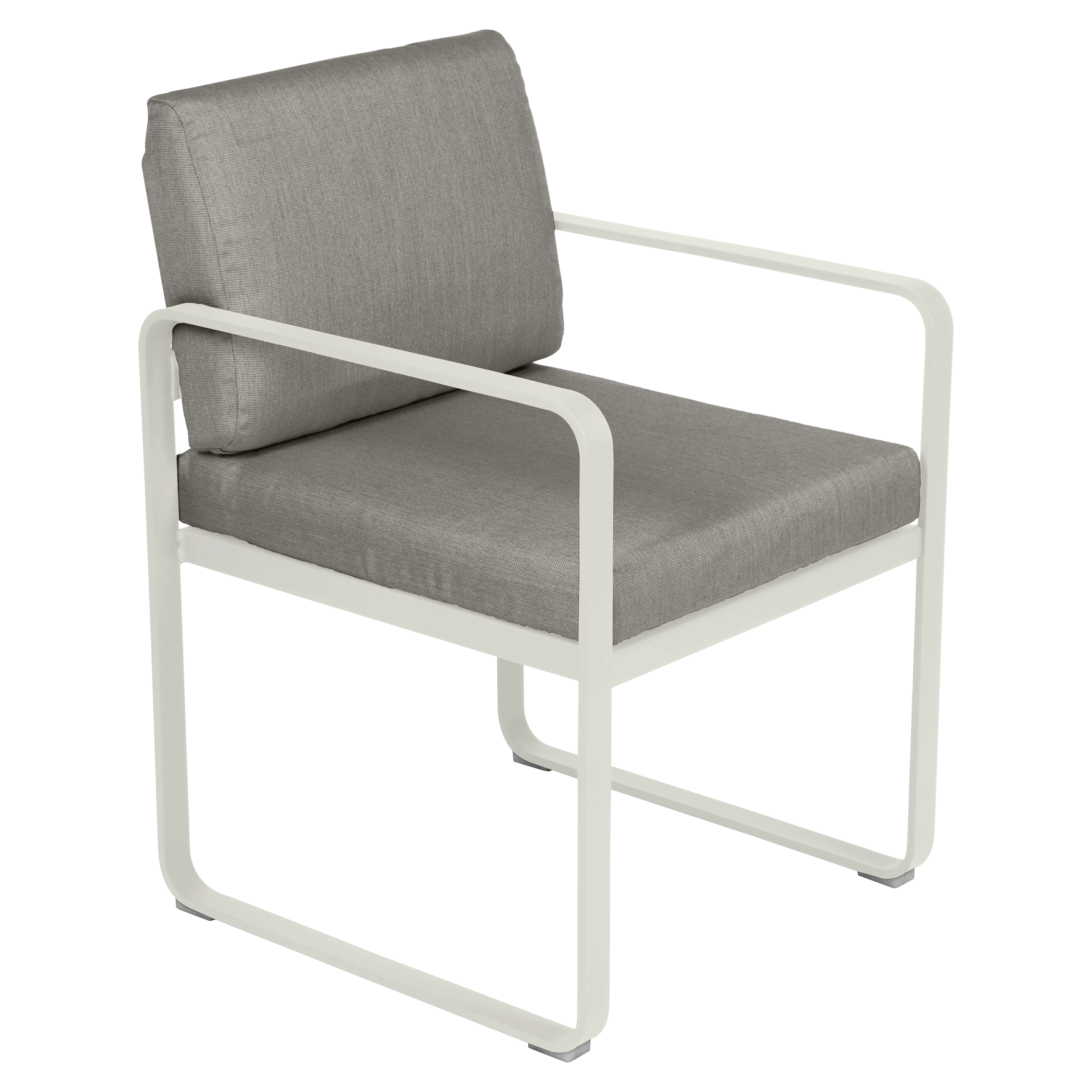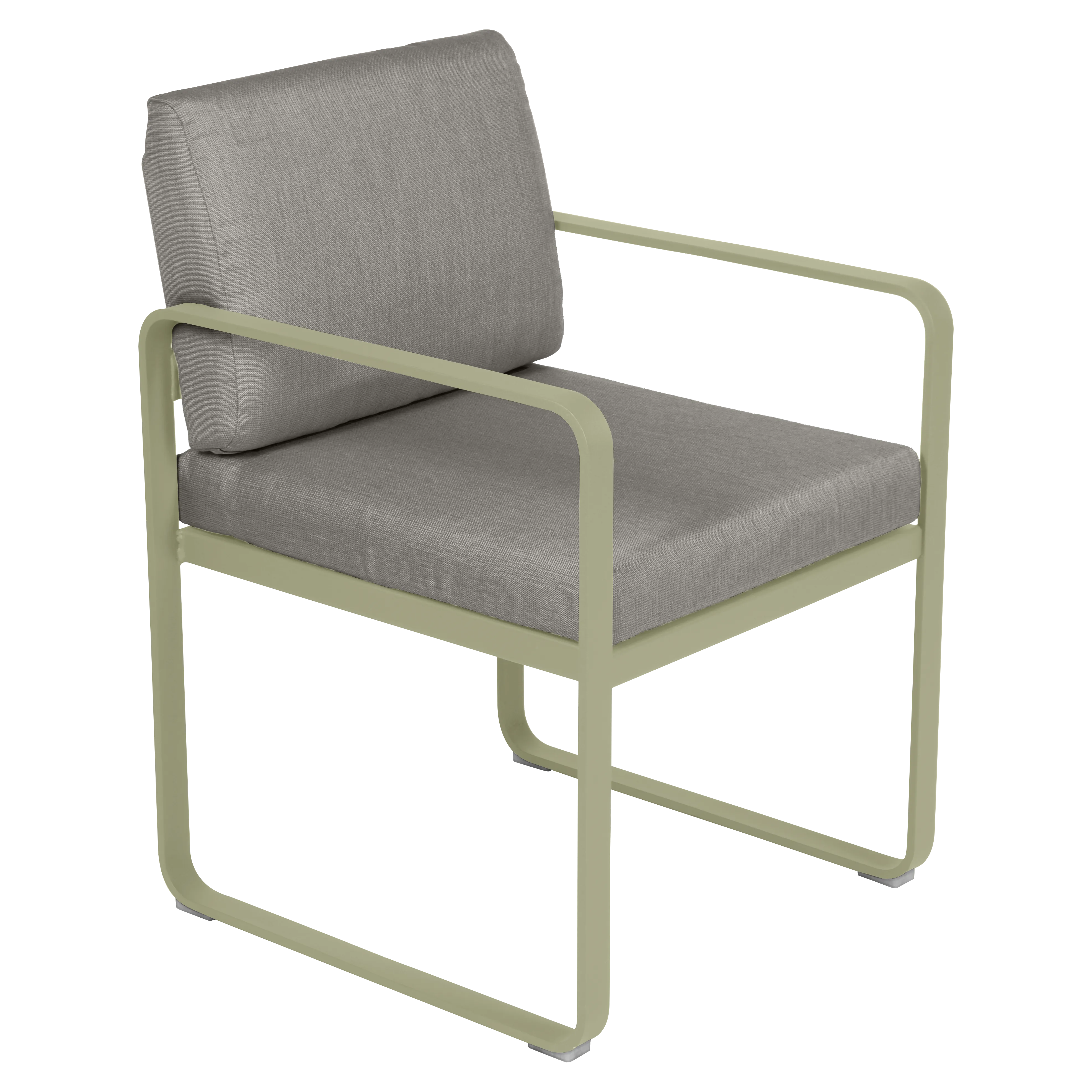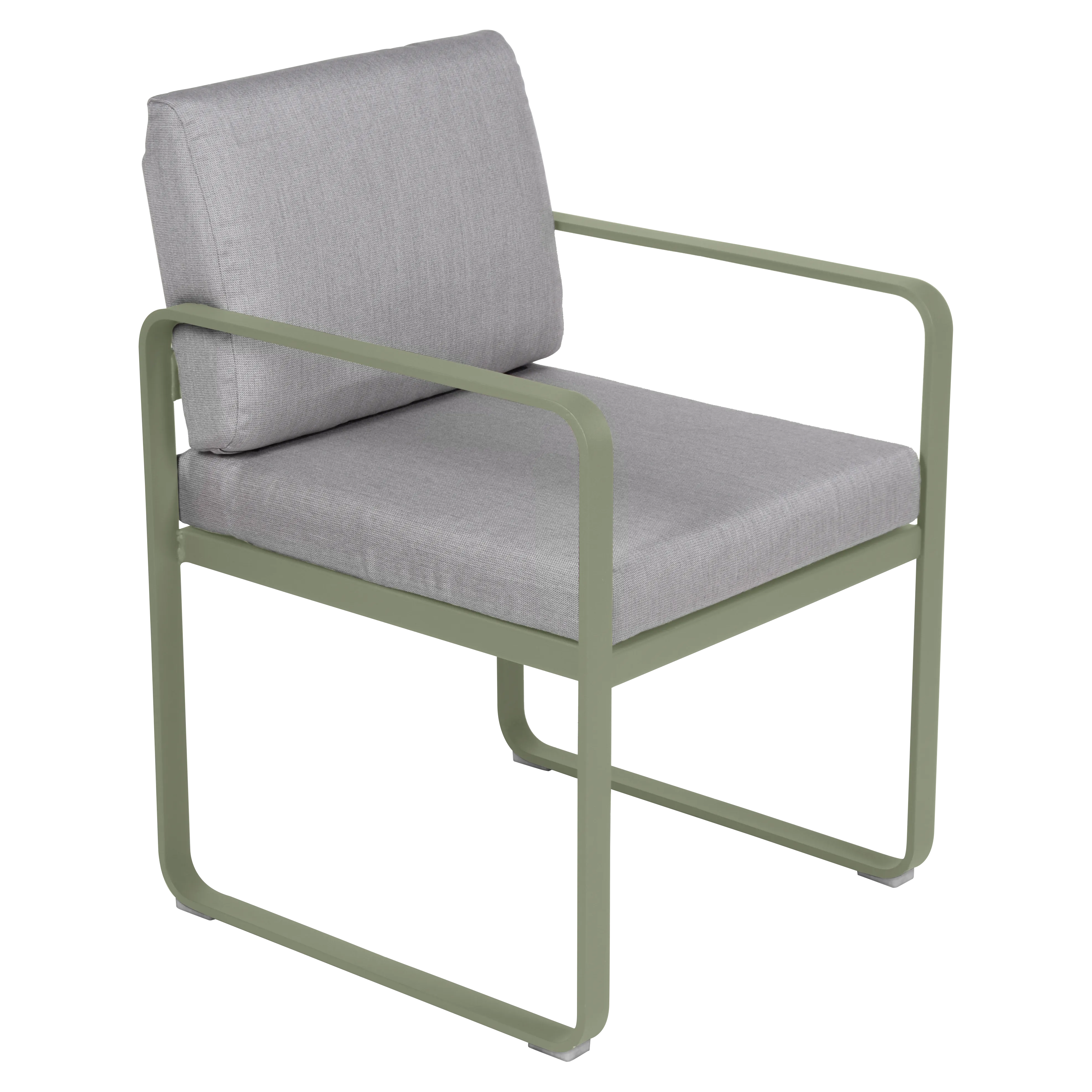 aluminium flat Frame Perforated aluminium sheet seat Perforated aluminium sheet backrest aluminium flat armrests outdoor fabric solution-dyed acrylic Sunbrella® finish Seat foam filling: High resilience polyurethane Backrest foam filling: High resilience polyurethane