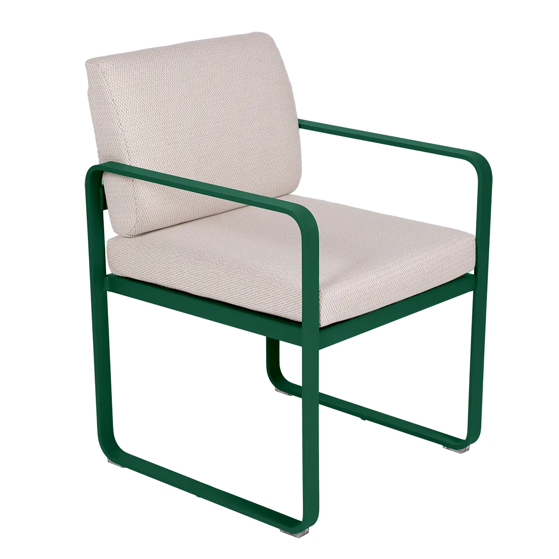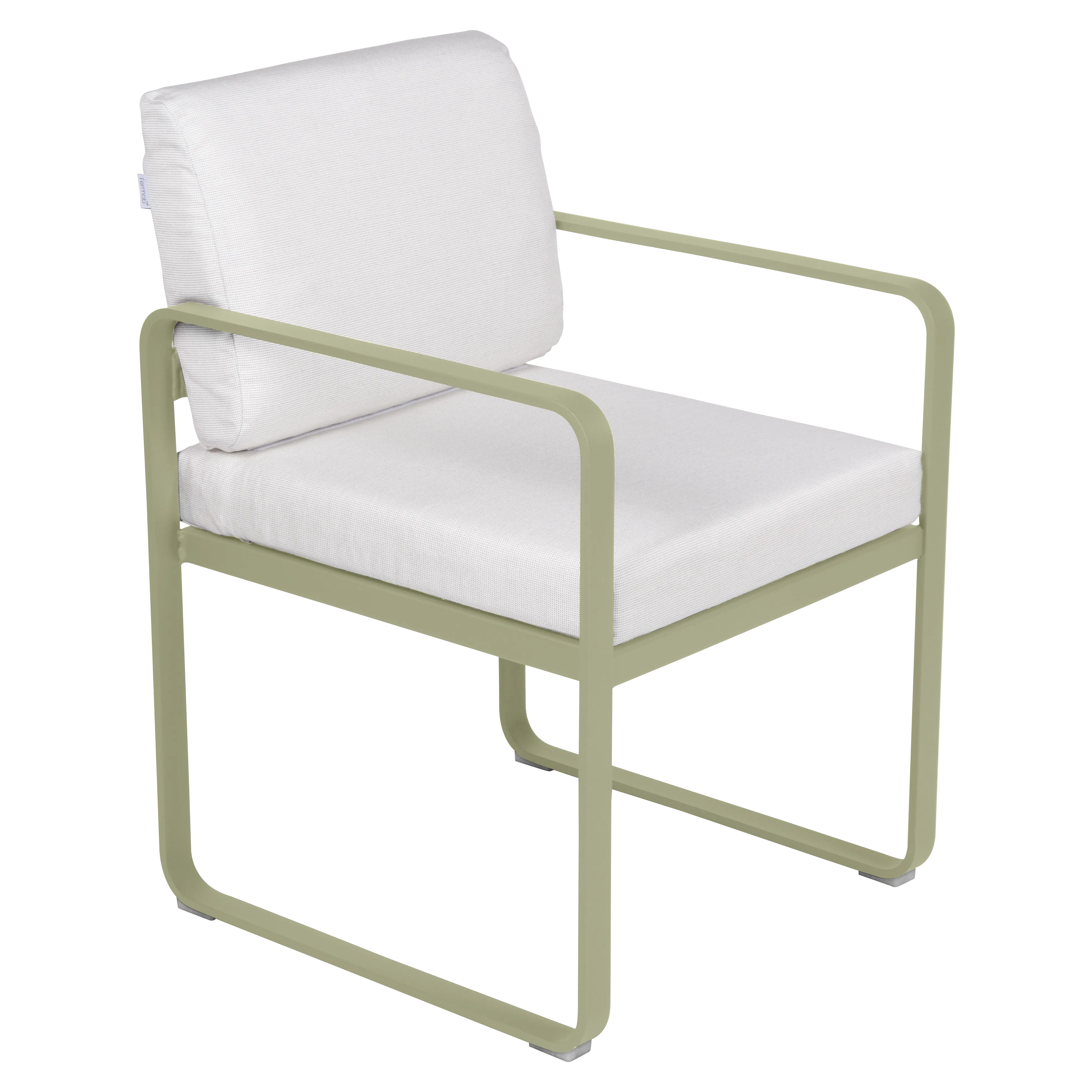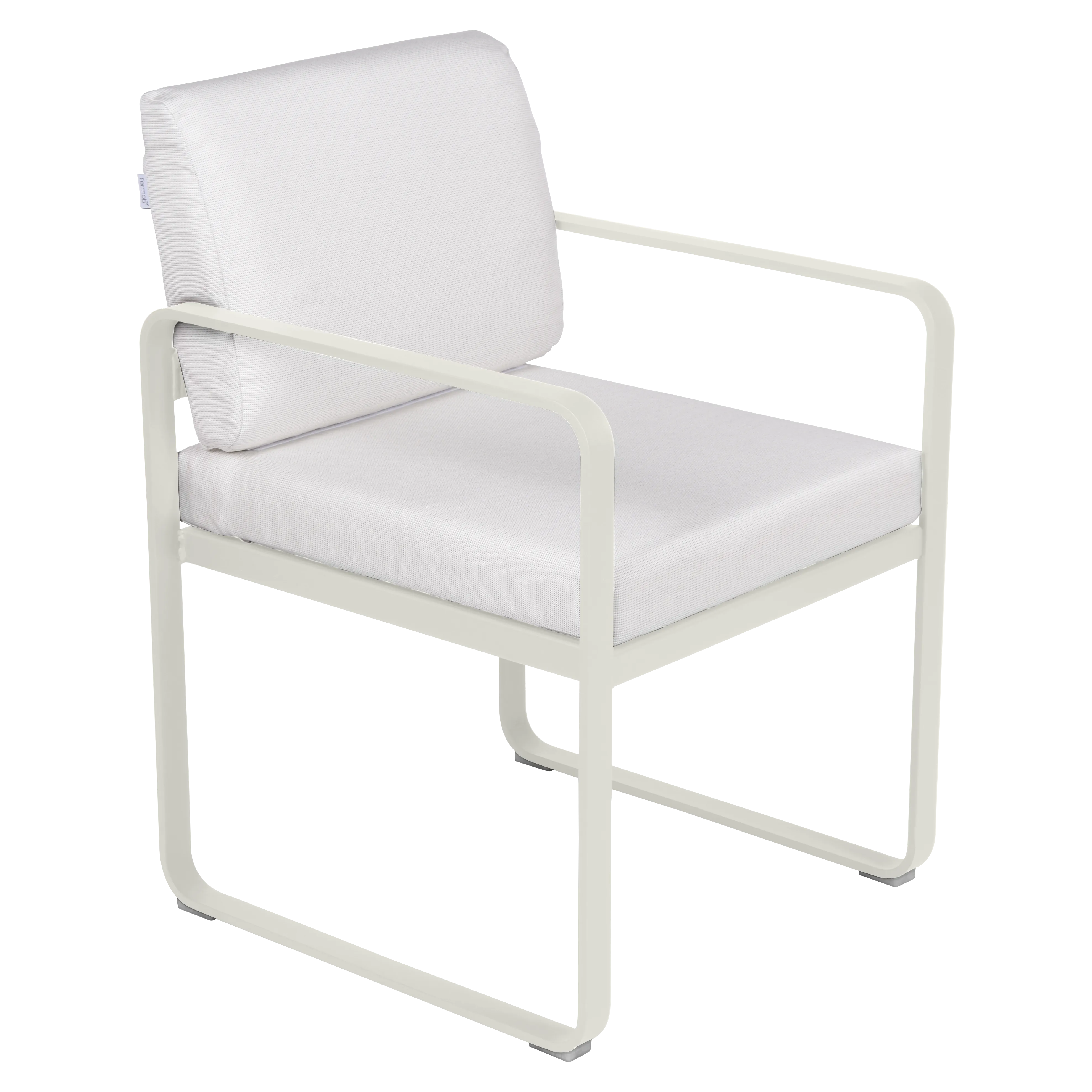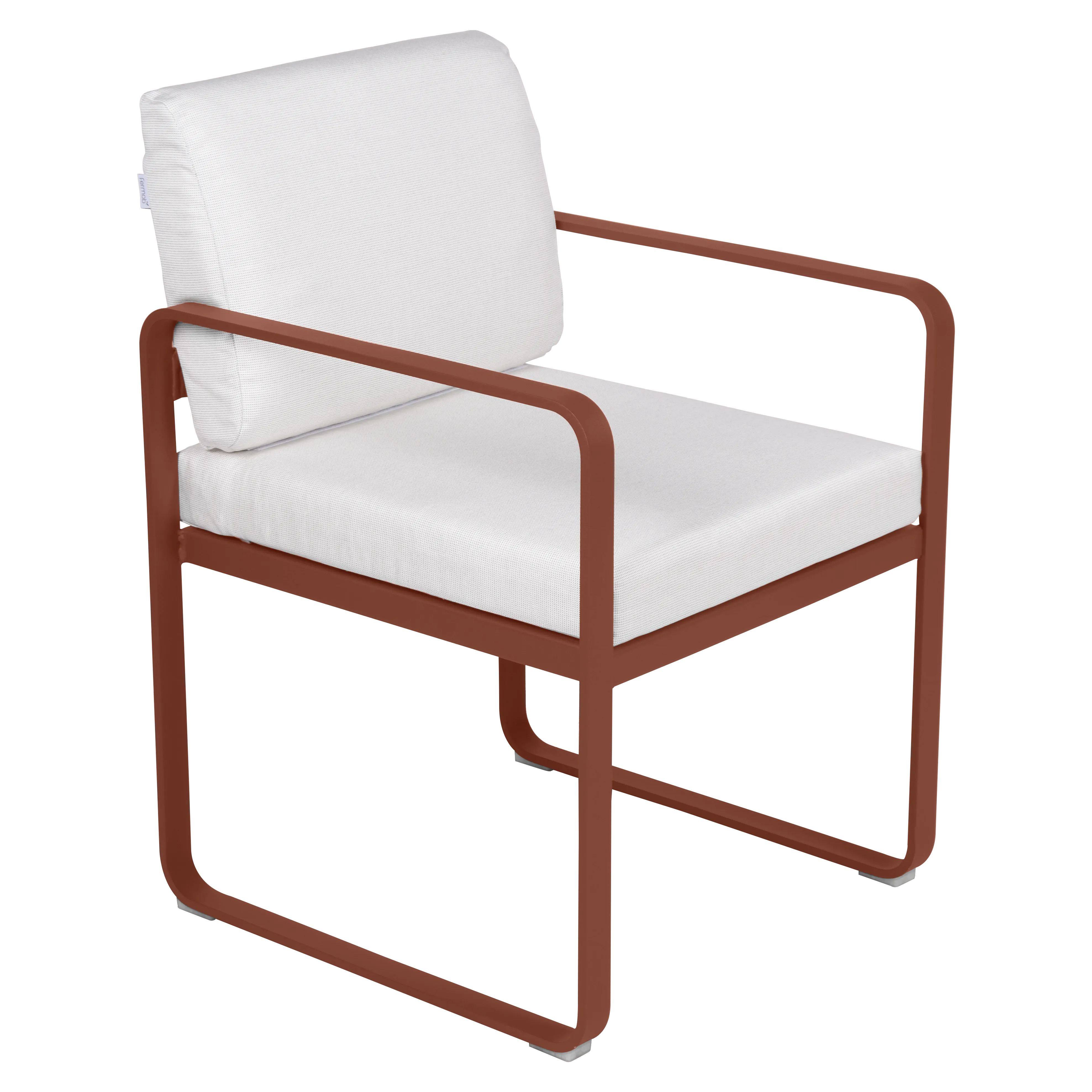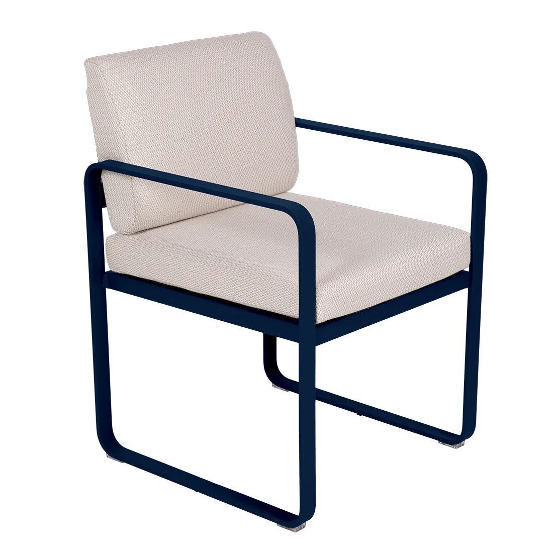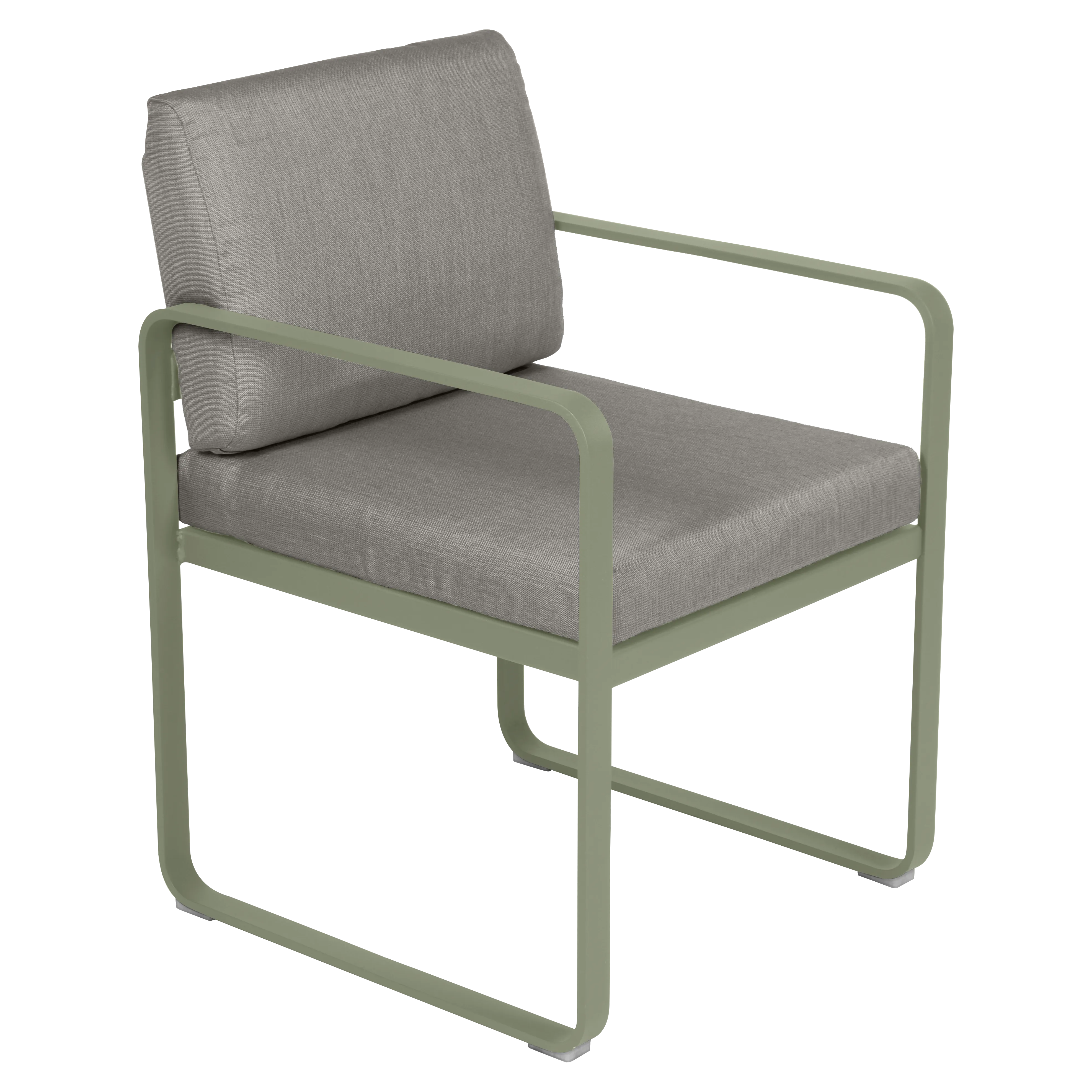 aluminium flat Frame Perforated aluminium sheet seat Perforated aluminium sheet backrest aluminium flat armrests outdoor fabric solution-dyed acrylic Sunbrella® finish Seat foam filling: High resilience polyurethane Backrest foam filling: High resilience polyurethane