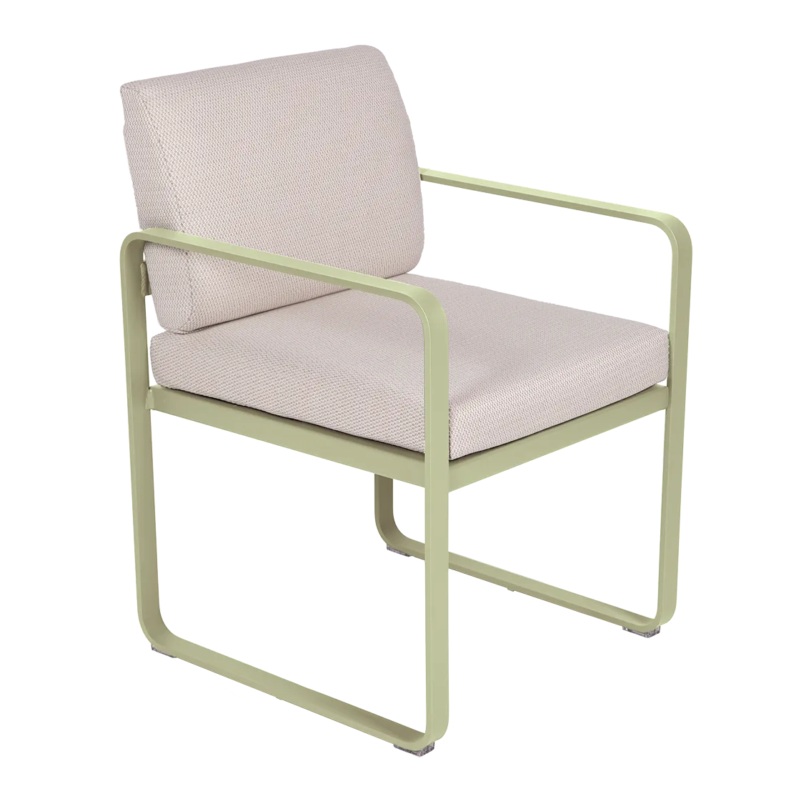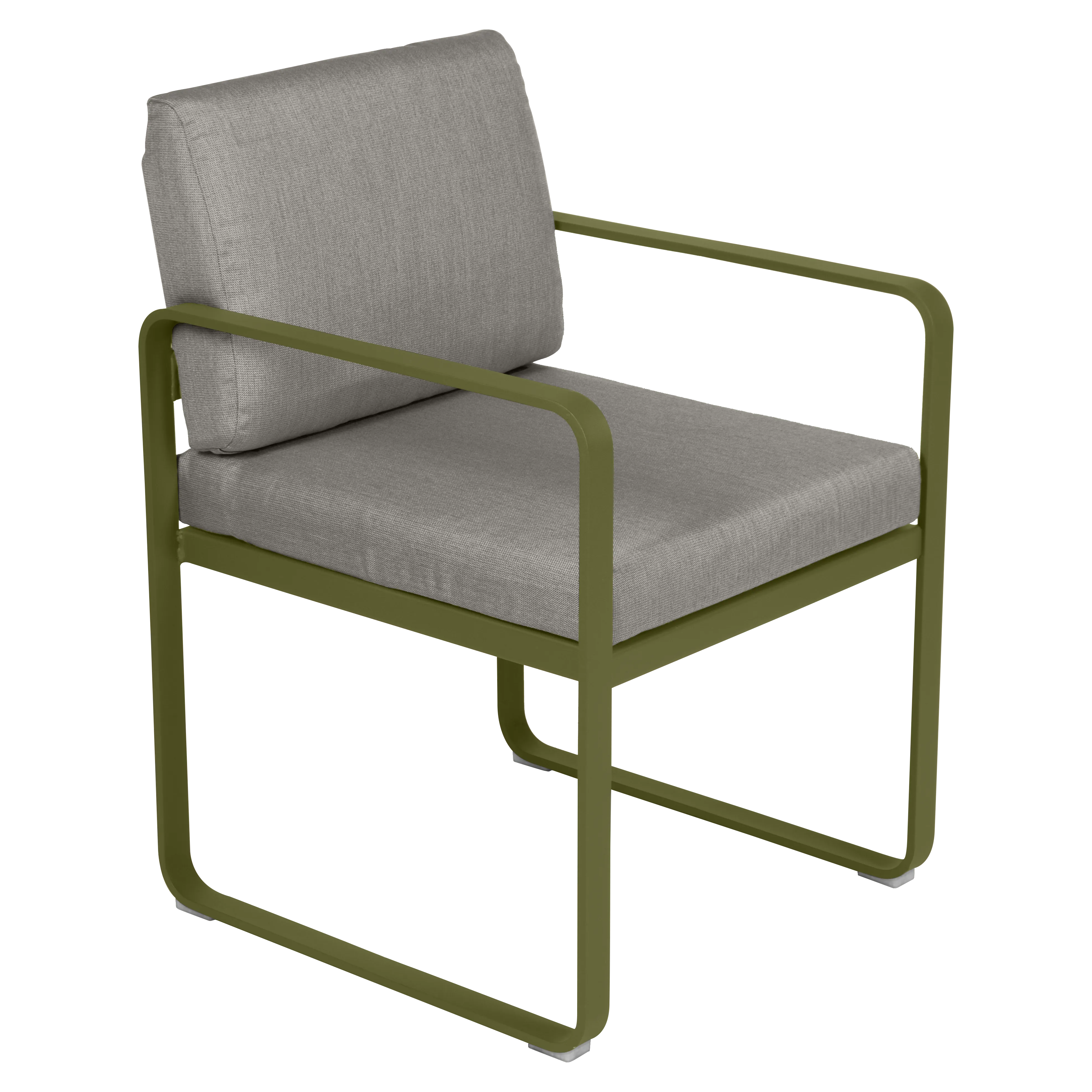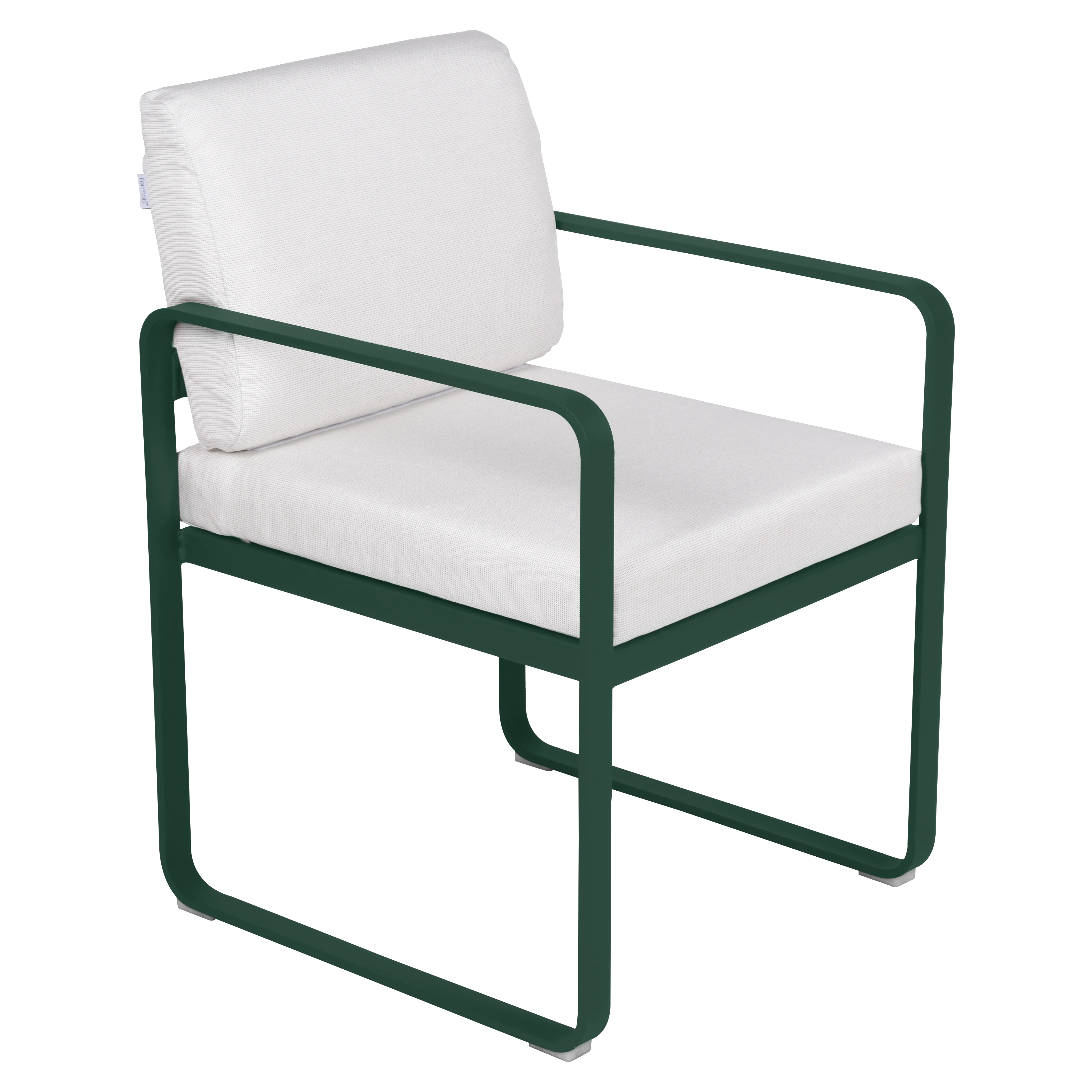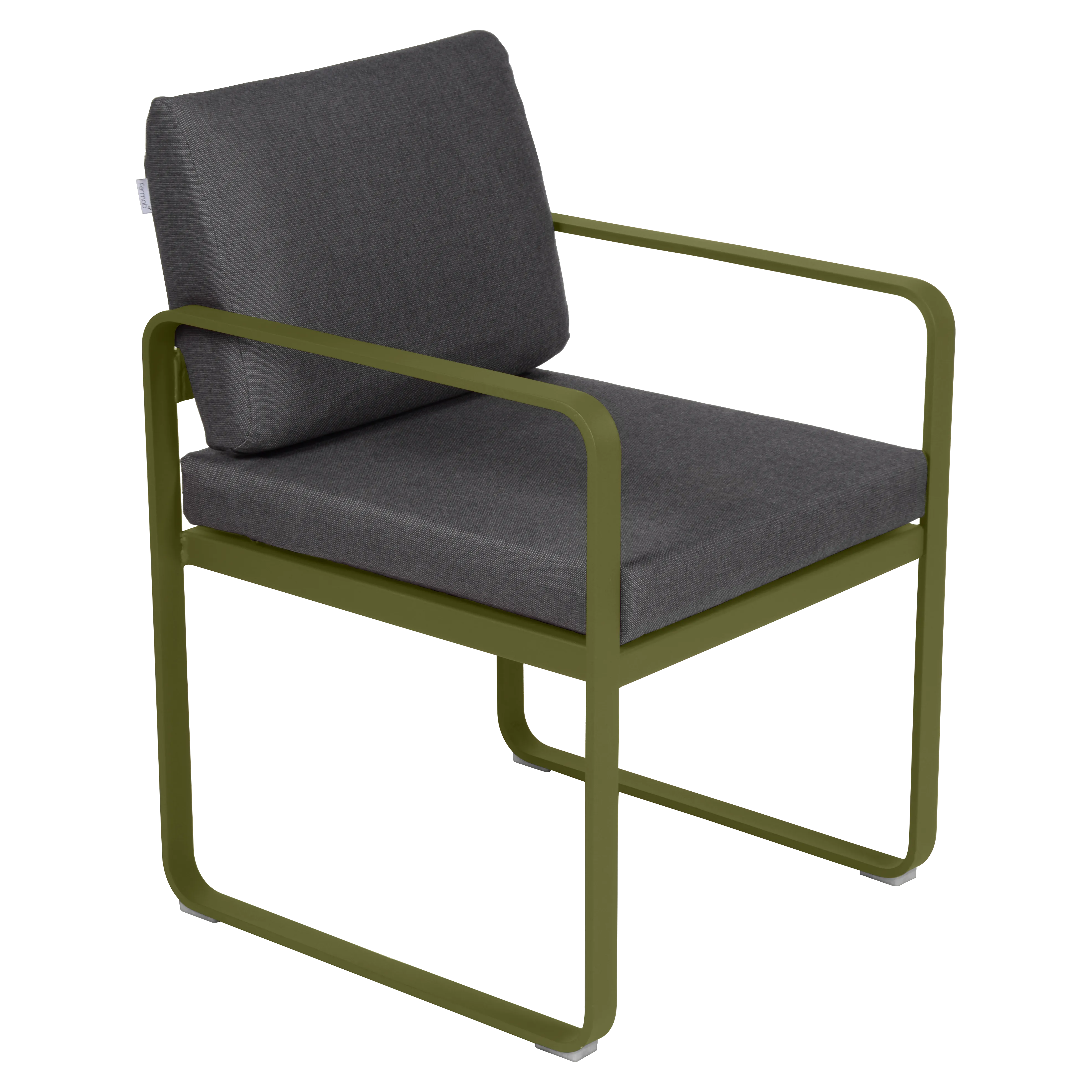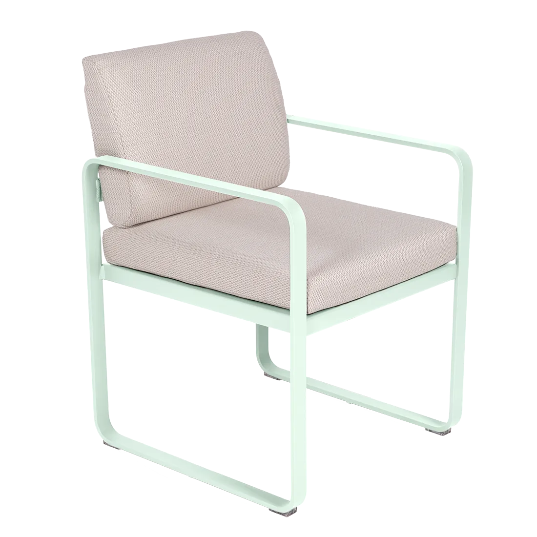 aluminium flat Frame Perforated aluminium sheet seat Perforated aluminium sheet backrest aluminium flat armrests outdoor fabric solution-dyed acrylic Sunbrella® finish Seat foam filling: High resilience polyurethane Backrest foam filling: High resilience polyurethane
