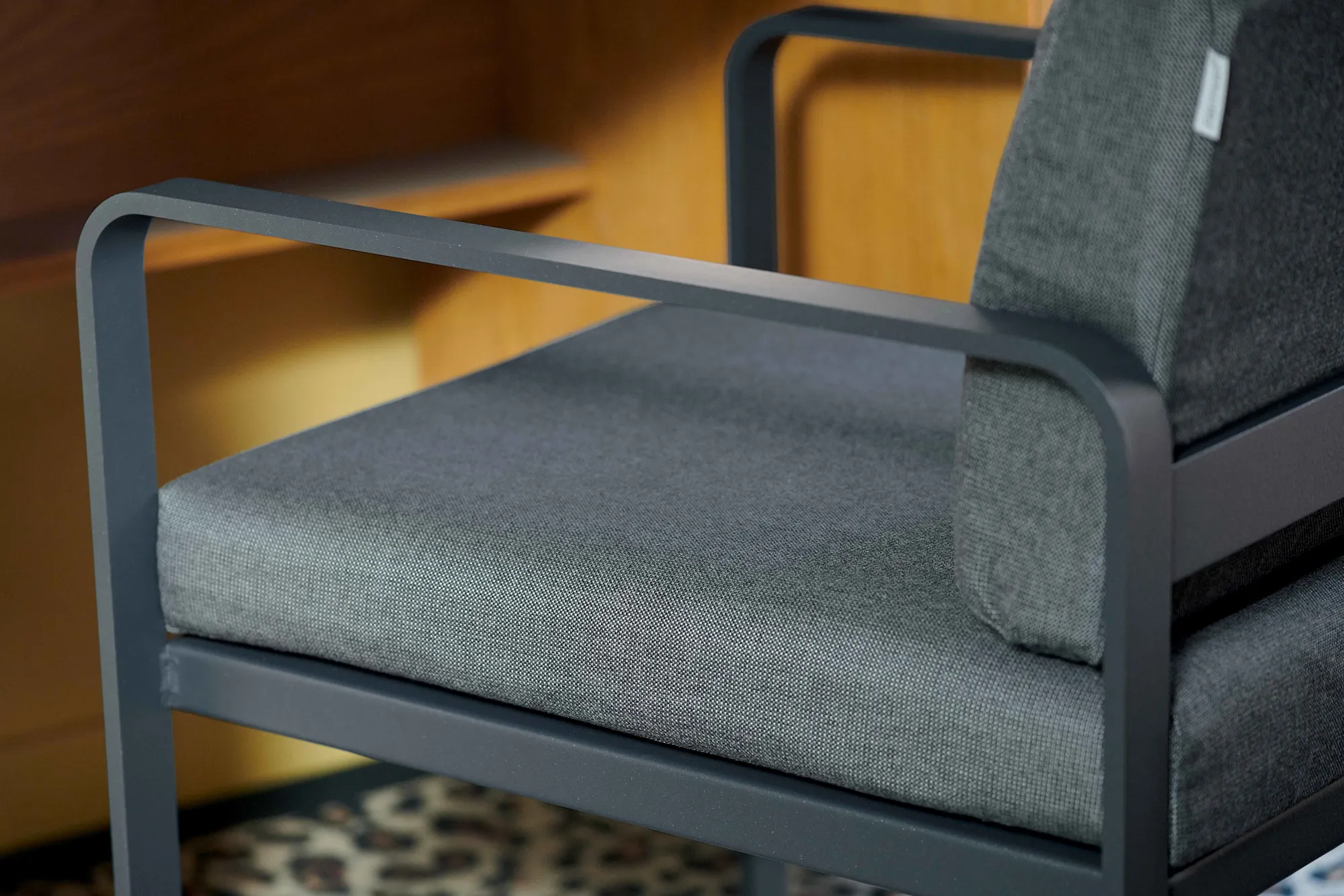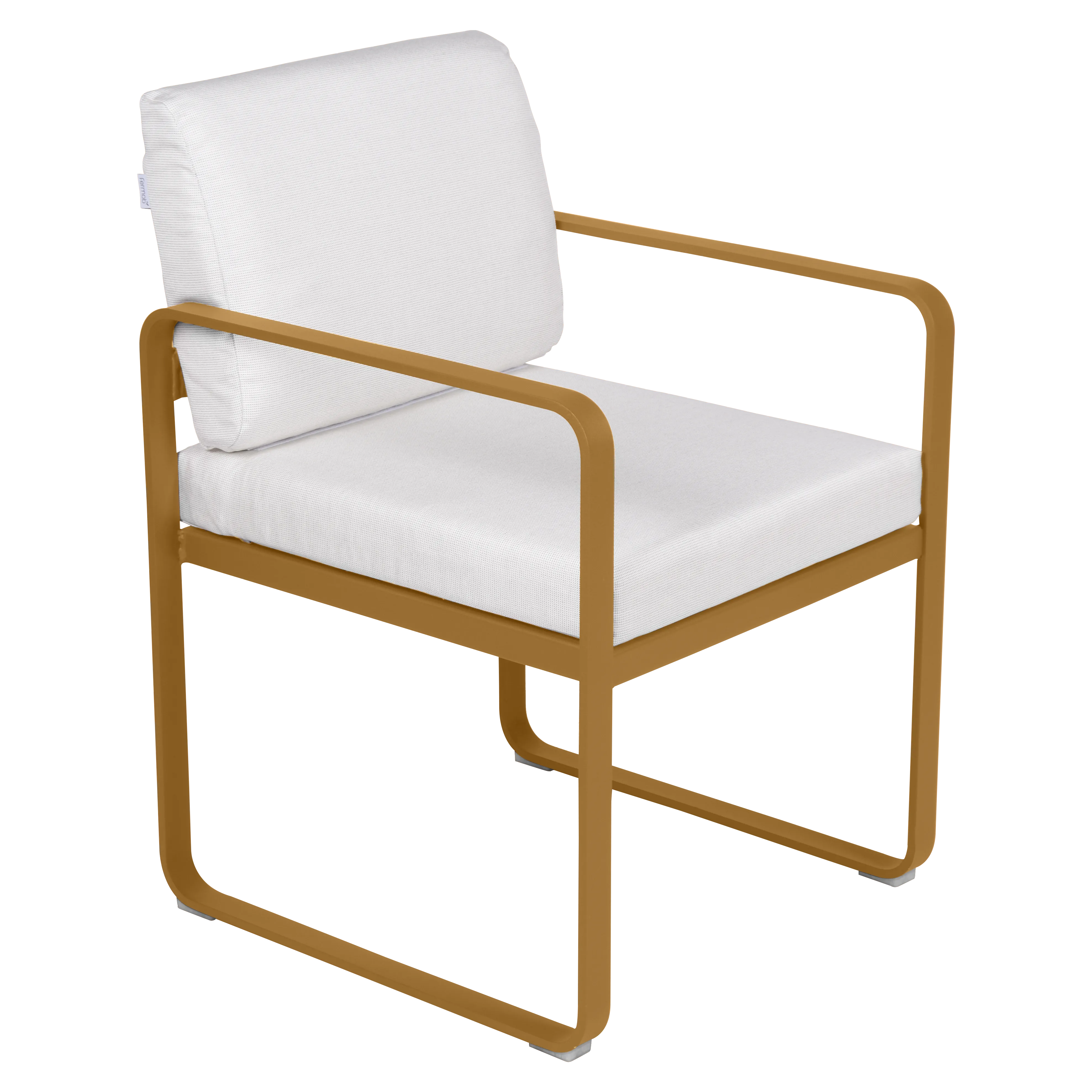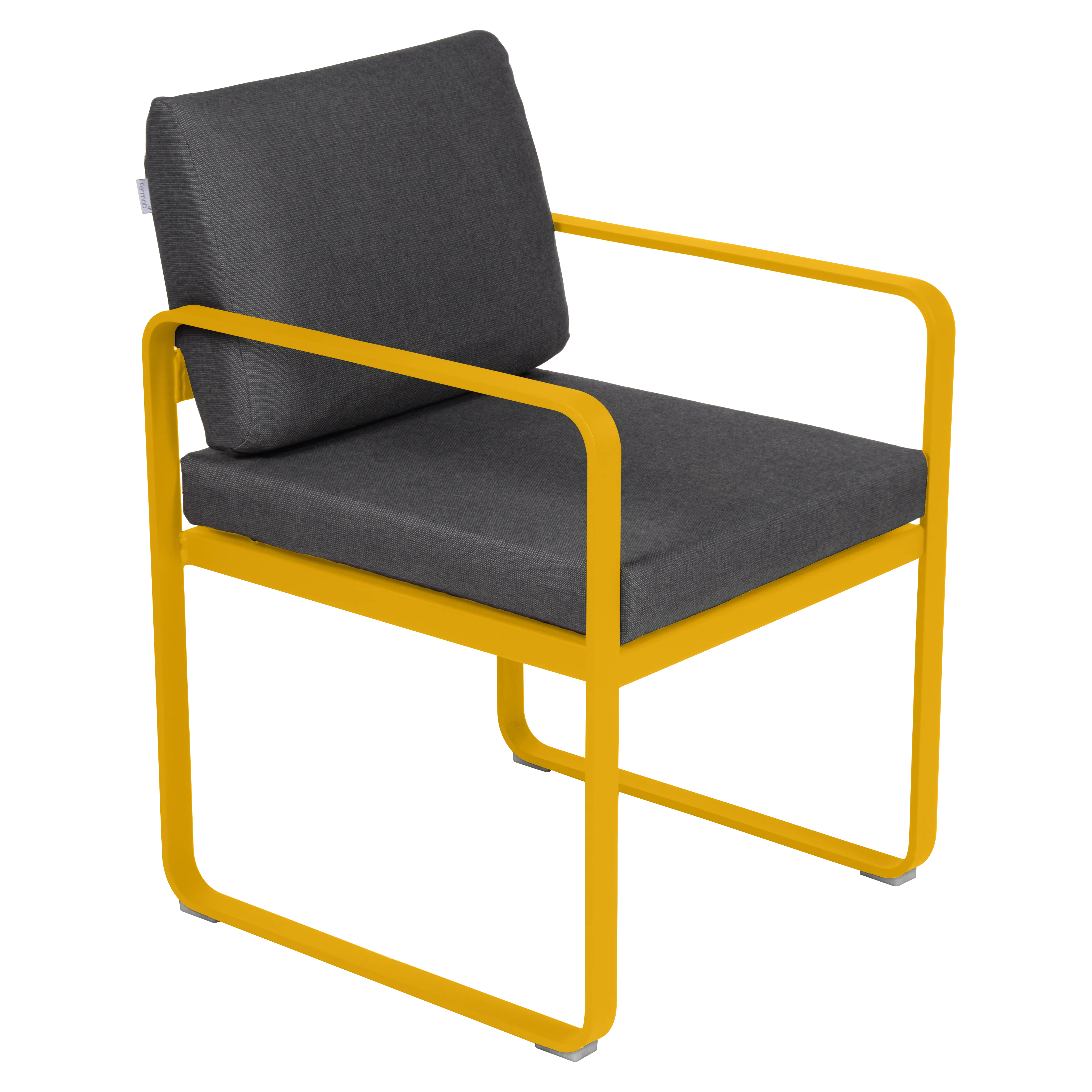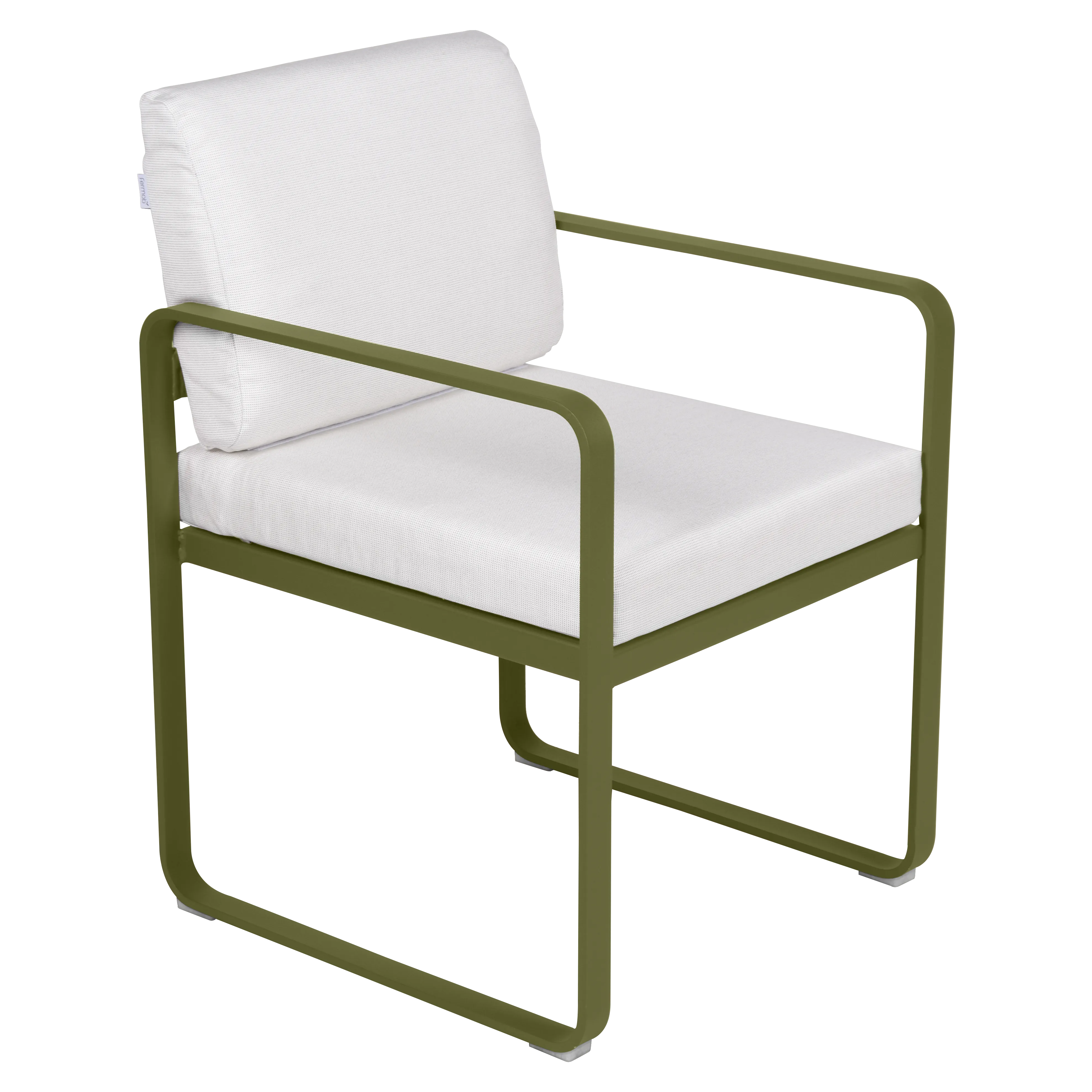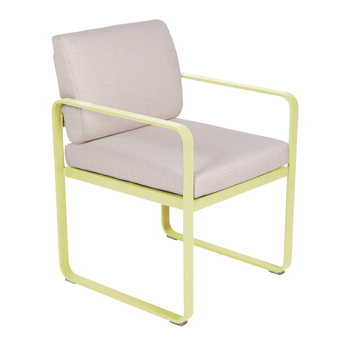 aluminium flat Frame Perforated aluminium sheet seat Perforated aluminium sheet backrest aluminium flat armrests outdoor fabric solution-dyed acrylic Sunbrella® finish Seat foam filling: High resilience polyurethane Backrest foam filling: High resilience polyurethane