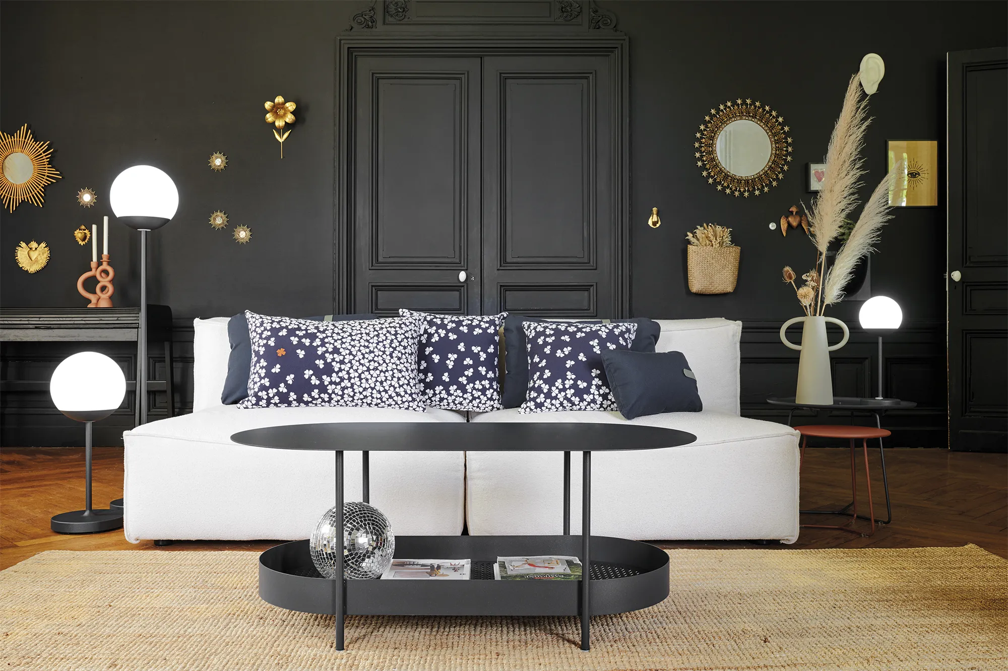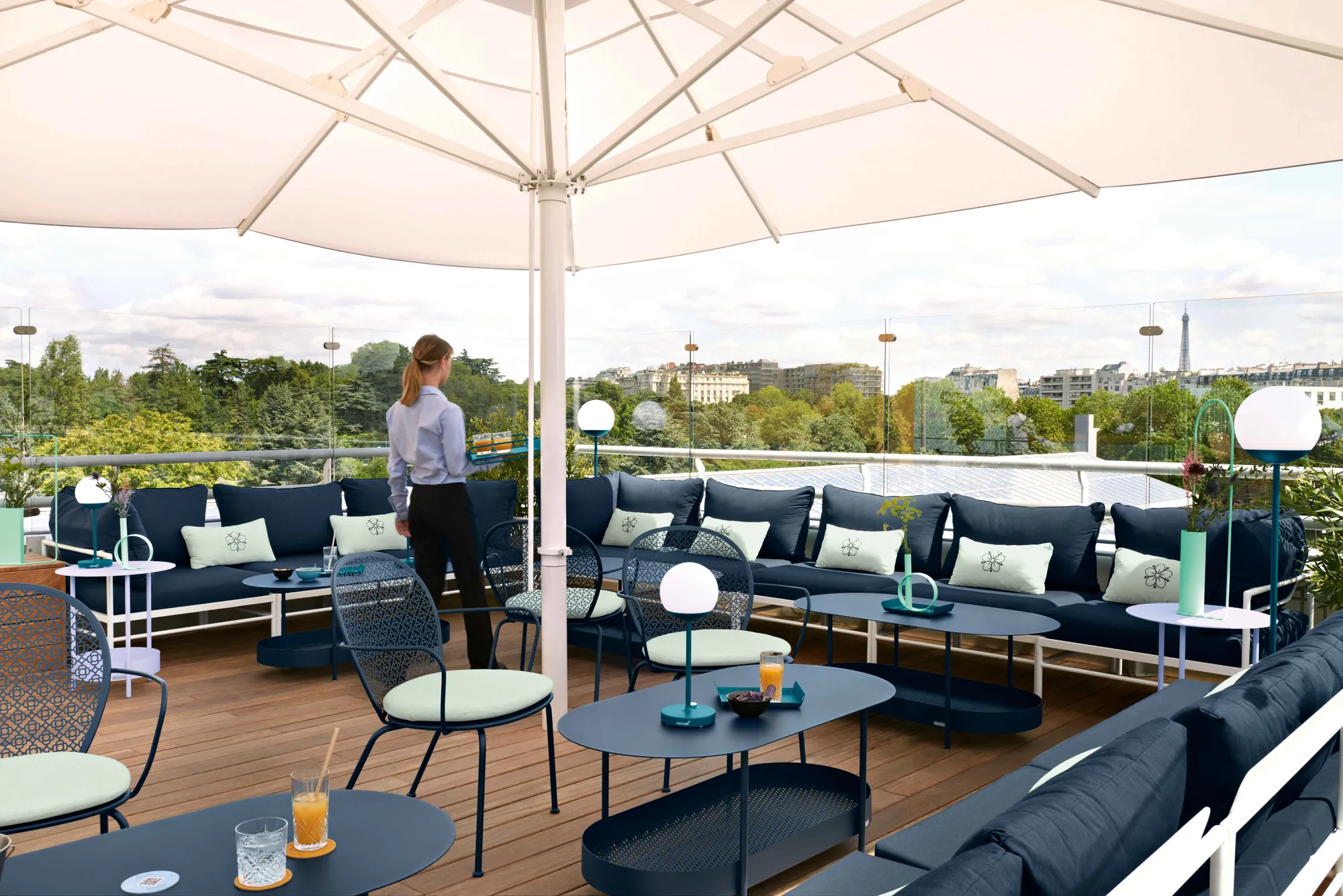 Solution-dyed acrylic outdoor fabric 260 Xg/m². White aluminium tubular mast Ø 40 mm – Thickness : 2mm. fibreglass ribs