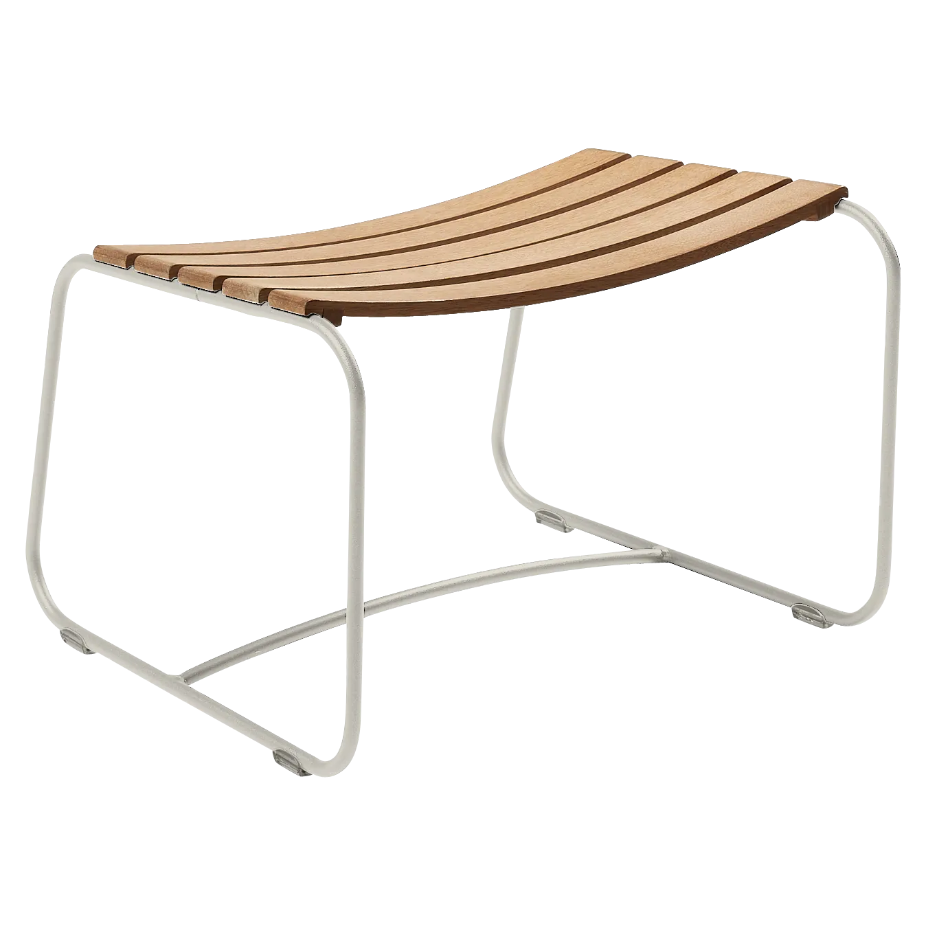 Steel wire frame. Teak base. Steel slat seat. Steel slat backrest. Teak armrests